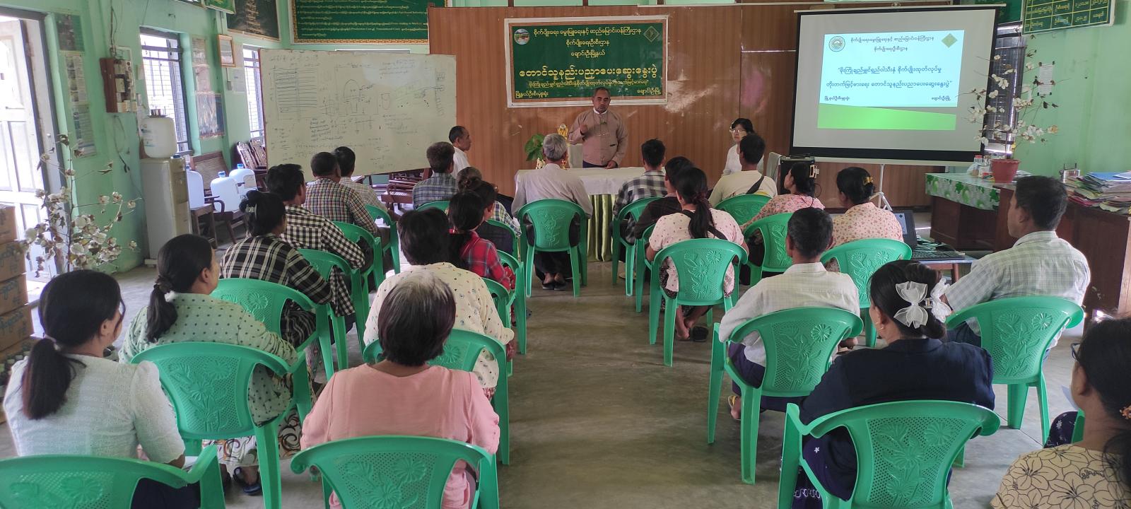 သက်ဆိုင်ရာ မြေ၊ မျိုး၊ ပိုး တာဝန်ခံများက မိုးကြိုချည်မျှင်ရှည်ဝါ အထွက်နှုန်းတိုးတက်ရေး အတွက်လိုအပ်သည်များ ဆွေးနွေးခဲ့သည်။ မြို့နယ်ဦးစီးမှူးမှ တောင်သူများ၏ မေးမြန်းဆွေးနွေး ချက်များ ဖြေကြားပေးခဲ့ပြီး မိုးကြိုဝါစိုက်ပျိုးထုတ်လုပ်မှု မြင့်မားရေးအတွက် သီးထပ်၊ သီးညှပ် စိုက်ပျိုးနည်းစနစ်များ၊ အပင်ကြီးထွားမှု အဆင့်လိုက် မဖြစ်မနေ ဆောင်ရွက်ရမည့် လုပ်ငန်းစဥ် များအား အသေးစိတ်ဆွေးနွေးခဲ့သည်။ ထို့နောက် တက်ရောက်လာသည့် တောင်သူများအား ဝါမျိုးကောင်းမျိုးသန့် မျိုးစေ့များ အခမဲ့ပေးအပ်ခဲ့ပြီး မြေချဥ်၊ ငံ တိုင်းတာမှုကို ဒုတိယဦးစီးမှူး ဒေါ်ဥမ္မာခိုင်မှ လက်တွေ့ သရုပ်ပြသခဲ့သည်။