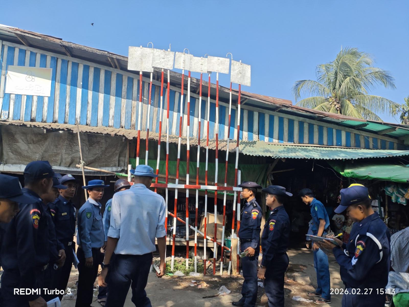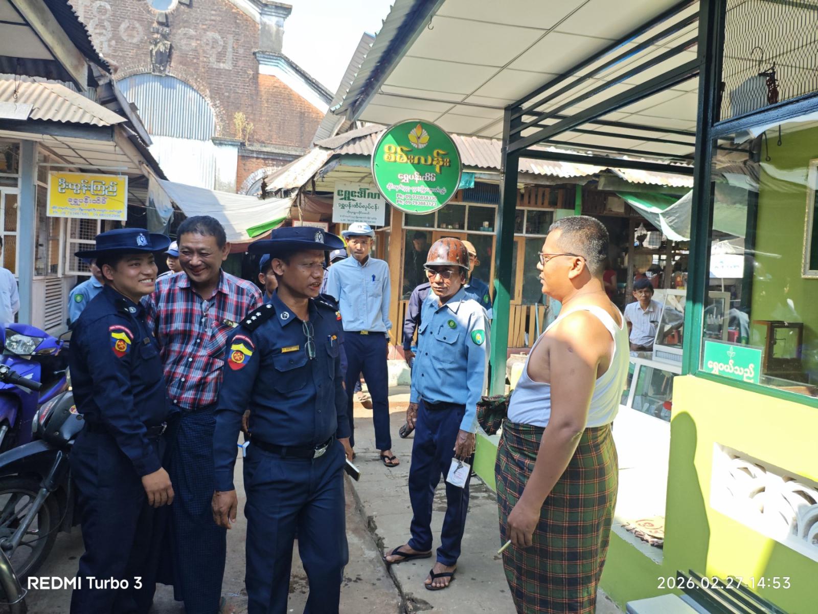 အဆိုပါ ကွင်းဆင်းစစ်ဆေးရာတွင် မြို့နယ်မီးသတ်ဦးစီးမှူး ဦးတင်မောင်ထွေးနှင့် တပ်ဖွဲ့ဝင်များ၊ မြို့နယ်စည်ပင်သာယာရေး အဖွဲ့ဝန်ထမ်းများ၊ လျှပ်စစ်ဌာနနှင့် တာဝန်ရှိသူများ၊ ရပ်ကွက်အုပ်ချုပ်ရေးမှူးများနှင့် ဈေးကော်မတီဝင်များ ပါဝင်သာ ပူးပေါင်းအဖွဲ့များဖြင့် ဈေးအတွင်း မီးဘေးအန္တရာယ် ကြိုတင်ကာကွယ်ရန် ပြည်သူများအနေဖြင့် မီးဘေးအန္တရာယ် မဖြစ်ပွားစေရေးနှင့် မီးဘေးကြောင့် ဒေသခံပြည်သူများ အသက်အိုးအိမ်စည်းစိမ်များ ဆုံးရှုံးမှုများ မရှိစေရေးအတွက် ဈေးဆိုင်ခန်းများတွင် အသုံးပြုသော လျှပ်စစ်မီးကြိုးများ ဟောင်းနွမ်းနေပါက အသစ်လဲလှယ်ရန်၊ မီးဘေးလုံခြုံရေးအတွက် လျှပ်စစ်မီး စနစ်တကျ ကိုင်တွယ်အသုံးပြုရေး၊ မီးချိတ်၊ မီးကပ်၊ သဲအိတ်၊ ရေအိတ်၊ မီးသတ်ဆေးဘူးနှင့်ရေပုံးများ အသင့်ထားရှိရန်၊ မီးလောင်မှုဖြစ်၍ မီးခိုးအန္တရာယ် ကြုံတွေ့ရပါက ဆောင်ရန်၊ ရှောင်ရန်များ၊ မီးလောင်မှု ဖြစ်ပွားပါက အချိန်မီသတင်းပေးပို့ကြရန်နှင့် မီးဘေးကြိုတင်ကာကွယ်ရေးဆိုင်ရာ လိုက်နာရမည့် အချက်များအား ပြောကြားခဲ့ပြီးနောက် တာဝန်ရှိသူများက စစ်ဆေးခဲ့ကြကြောင်း သိရသည်။
