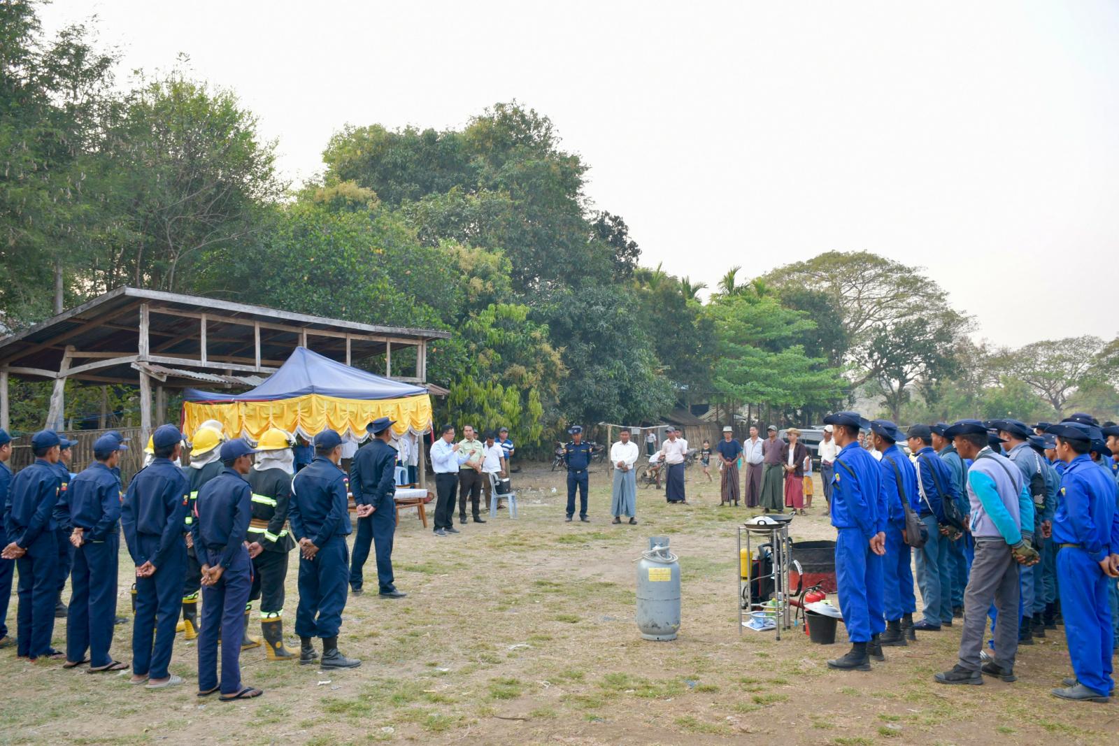 ယင်းနောက် နေပြည်တော်ကောင်စီဝင် ဦးဇေယျာလင်းက ပြည်သူများအား သဘာဝဘေးအန္တရာယ်များ ဖြစ်သည့် ရေဘေး၊ လေဘေး၊ မီးဘေးအန္တရာယ်များမဖြစ်ပွားမှီ ကြိုတင် ဆောင်ရွက်ရမည့် နည်းလမ်းများနှင့် ဘေးအန္တရာယ်များဖြစ်ပွားပါက ဆောင်ရွက်ရမည့်နည်းလမ်းများနှင့်စပ်လျဉ်း၍ ရှင်းလင်းပြောကြားပြီး မီးသတ်တပ်ဖွဲ့ဝင်များအား စားသောက်ဖွယ်ရာများ ပေးအပ်ခဲ့သည်။