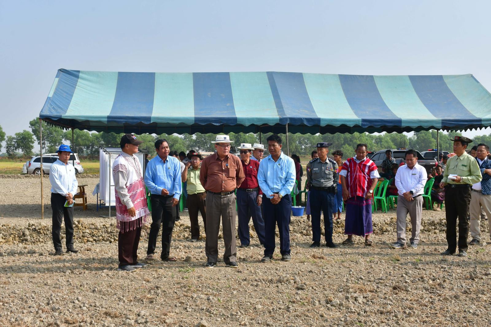 ထို့နောက် ပြည်နယ်ဝန်ကြီးချုပ်က တောင်သူများနှင့်တွေ့ဆုံ၍ လယ်ယာမြေအဆင့်မြှင့်တင်ခြင်းမှ ရရှိမည့်အကျိုးကျေးဇူးများကို ရှင်းလင်းပြောကြားပြီး စားဝတ်နေရေးအဆင်ပြေစေရန်၊ စားရေရိက္ခာဖူလုံပိုလျှံစေရန် စိုက်ပျိုးမွေးမြူရေးလုပ်ငန်းများကို စဉ်ဆက်မပြတ်လုပ်ကိုင်ဆောင်ရွက်ကြစေလိုပြီး လိုအပ်သည့်ကူညီဖြည့်ဆည်းမှုများကို ပြည်နယ်အစိုးရအဖွဲ့မှ ဆောင်ရွက်ပေးသွားမည်ဖြစ်ကြောင်း၊ အဆင့်မြှင့်တင်ဖော်ထုတ်ပြီးသည့် လယ်ယာမြေများကို တောင်သူများအား ပြန်လည်ဝေမျှပေးသွားမည်ဖြစ်ကြောင်း ပြောကြားပြီး တောင်သူဆွေးနွေးတင်ပြသည့် ရေသွင်း၊ ရေနုတ်မြောင်းများ၊ ကုန်ထုတ်လမ်းများ၊ ကျေးရွာချင်းဆက်လမ်းများ ဆောင်ရွက်ပေးနိုင်ရေး ဌာနဆိုင်ရာတာဝန်ရှိသူများနှင့် ပေါင်းစပ်ညှိနှိုင်း ဖြည့်ဆည်းဆောင်ရွက်ပေးခဲ့ကာ လယ်ယာမြေအဆင့်မြှင့်တင်ခြင်းနှင့် ကုန်ထုတ်လမ်းဆောင်ရွက်ပေးနိုင်ရေး ကြည့်ရှုစစ်ဆေးခဲ့ကြသည်။