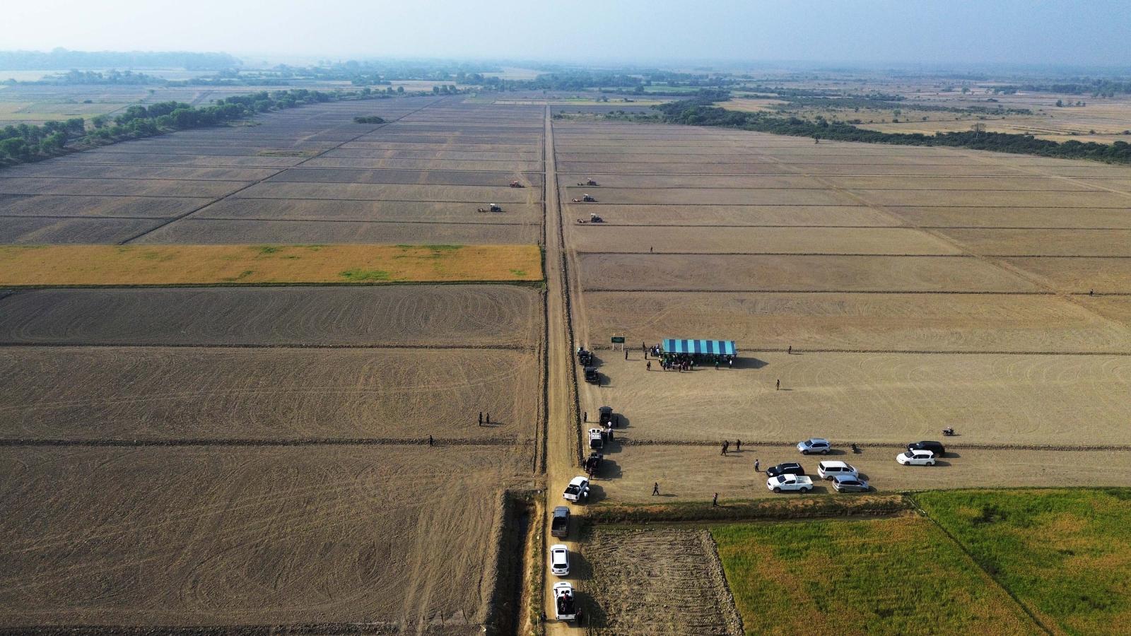 ဦးစွာ ပြည်နယ်ဝန်ကြီးချုပ်နှင့် တာဝန်ရှိသူများသည် စက်မှုလယ်ယာဦးစီးဌာန ၂၀၂၅-၂၀၂၆ ဘဏ္ဍာရေးနှစ် ပြည်နယ်အစိုးရအဖွဲ့ရန်ပုံငွေကျပ် ၁၂၉ ဒသမ ၃၀ သန်းဖြင့် ကော့စိန်ဘန် (အောက်)ကျေးရွာရှိ တောင်သူ ၄၀ ဦး၏ စိုက်ဧကများအား ဧက(၂၀၀) လယ်ယာမြေအဆင့်မြှင့်တင်ခြင်းလုပ်ငန်း ၈၅ ရာခိုင်နှုန်းခန့် ဆောင်ရွက်ပြီးစီးမှုအခြေအနေများကို ကြည့်ရှုစစ်ဆေးရာ ပြည်နယ်ဦးစီးမှူးဦးရဲမင်းထွဋ်နှင့် တာဝန်ရှိသူများက စက်ယန္တရားများအသုံးပြု၍ လုပ်ငန်းဆောင်ရွက်မှုအခြေအနေများကို ရှင်းလင်းတင်ပြပြီး ပြည်နယ်ဝန်ကြီးချုပ်က လိုအပ်သည်များမှာကြားသည်။