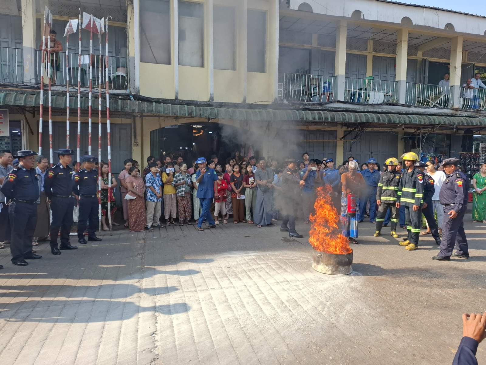 ဧရာဝတီတိုင်းဒေသကြီး၊ ပုသိမ်ခရိုင်၊ ပုသိမ်မြို့ အမှတ်(၄)ရပ်ကွက်ရှိ ရွှေပြည်သာဈေးနှင့် မြို့မဈေးတို့တွင် ယနေ့နံနက်ပိုင်းက ဧရာဝတီတိုင်းဒေသကြီး မီးသတ်ဦးစီးဌာနမှဦးဆောင်၍ မီးဘေးအန္တရာယ်ကြိုတင်ကာကွယ်ရေး အသိပညာပေးဟောပြောခြင်းနှင့် ဇာတ်တိုက်လေ့ကျင့်ခြင်းများ ဆောင်ရွက်ခဲ့ကြသည်။