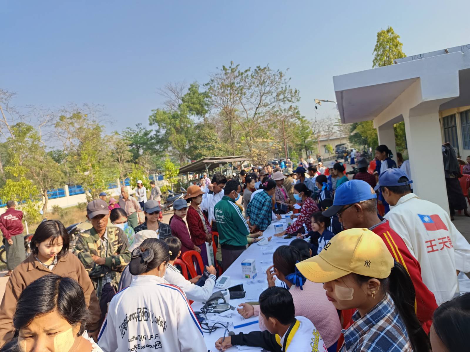 ထိုသို့ဆောင်ရွက်ရာ၌ အထွေထွေသမားတော်က ကျား (၃၆)ဦး၊ မ (၈)ဦး၊ ခွဲစိတ်အထူးကုက ကျား (၄)ဦး၊ မ (၁၁)ဦး၊ ကလေးအထူးကုဆရာဝန်ကြီးက ကျား (၉)ဦး၊ မ (၅)ဦး၊ အရိုးအထူးကုဆရာဝန်ကြီးက ကျား (၂၁)ဦး၊ မ (၄၂)ဦး၊ မျက်စိအထူးကုဆရာဝန်ကြီးက ကျား (၁၇)ဦး၊ မ (၅၅)ဦး၊ နားနှာခေါင်းလည်ချောင်းအထူးကုက ကျား (၇)ဦး၊ မ (၁၄)ဦး၊ သွားအထူးကုက ကျား (၅)ဦး၊ မ (၅)ဦး၊ တီဗွီဓာတ်မှန်ဆရာဝန်က ကျား (၂၁)ဦး၊ မ (၄၃)ဦးတို့အား စမ်းသပ်စစ်ဆေးကုသပေးခဲ့ကြရာ ကျား (၁၂၀)ဦးနှင့် မ (၂၅၂)ဦး စုစုပေါင်း (၃၇၂)ဦးအား စမ်းသပ်စစ်ဆေးကုသမှုများ ဆောင်ရွက်ပေးခဲ့ကြသည်။