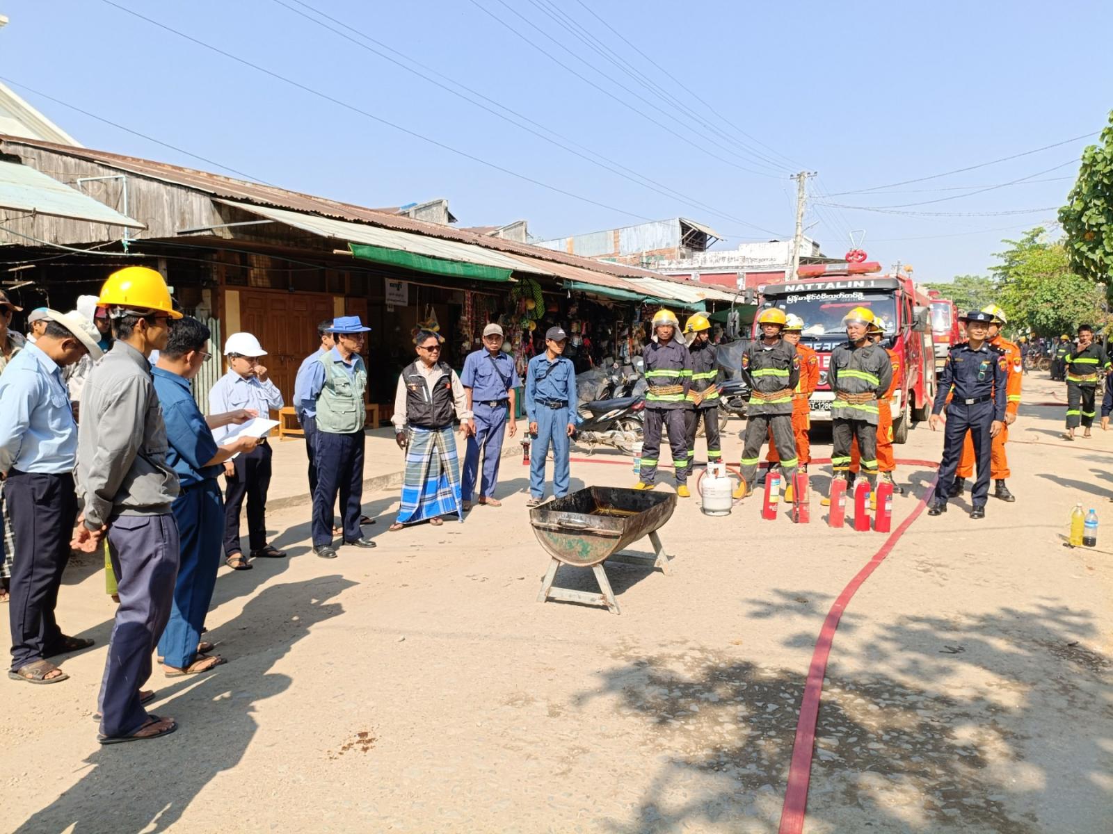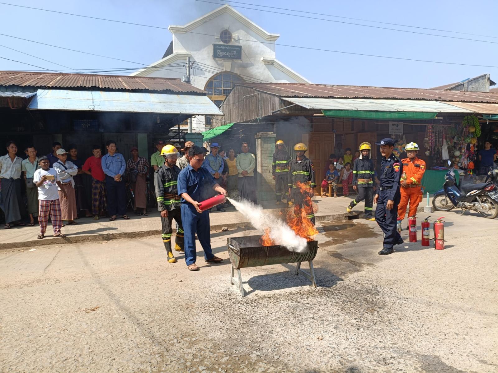အဆိုပါ လက်တွေ့မီးငြှိမ်းသတ် သရုပ်ပြလေ့ကျင့်ခြင်းကို ဒုတိယမြို့နယ် အုပ်ချုပ်ရေးမှူး ဦးဖြိုးဝေစိုး၊ မြို့နယ်စည်ပင်သာယာရေးအဖွဲ့ အမှုဆောင်အရာရှိ နှင့်စည်ပင်သာယာဝန်ထမ်းများ၊ မီးသတ်ဦးစီးဌာနမှတပ်ဖွဲ့ဝင်များ၊ ဈေးတာဝန်ခံများနှင့်စျေးသူ/စျေးသားများ၊ ဈေးအကျိုးတော်ဆောင်ကော်မတီဝင်များ၊ မြို့နယ်အဆင့်ဌာနဆိုင်ရာအကြီးအကဲများ တက်ရောက်၍ လက်တွေ့ပါဝင်ဆောင်ရွက်ခဲ့ကြကြောင်း သိရသည်။