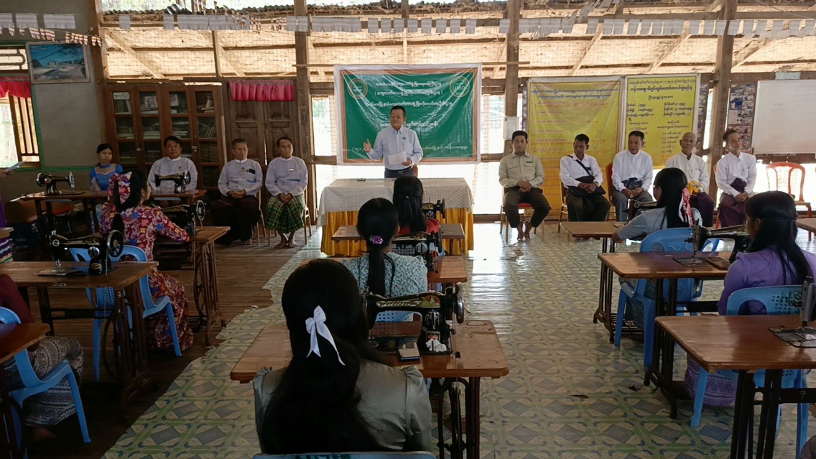 ရှေးဦးစွာ နေပြည်တော်ကောင်စီဝင်ဦးမြင့်စိုးက သင်တန်းဆင်းအမှာစကားပြောကြားသည်။ ဆက်လက်၍ နေပြည်တော်ကောင်စီဝင်နှင့် တာဝန်ရှိသူများက အဆင့်မြင့် စက်ချုပ်သင်တန်းတွင် ထူးချွန်ဆုရရှိသည့် သင်တန်းသူနှစ်ဦးအား အပ်ချုပ်စက် တစ်လုံးစီဆုချီးမြှင့်ပေးအပ်ပြီး သင်တန်းဆင်းလက်မှတ်များပေးအပ်သည်။ အဆိုပါအဆင့်မြင့်အပ်ချုပ်စက်သင်တန်းအား ဇန်နဝါရီ ၁၅ ရက်မှဖေဖော်ဝါရီ ၂၈ ရက်အထိသင်ကြားပို့ချပြီး ကံသာ၊သာယာစု၊ သဲဖြူ၊ အောက်ချိုင်း ကျေးရွာများမှ သင်တန်းသူ ၂၀ ဦးတက်ရောက်ခဲ့ကြောင်း သိရသည်။