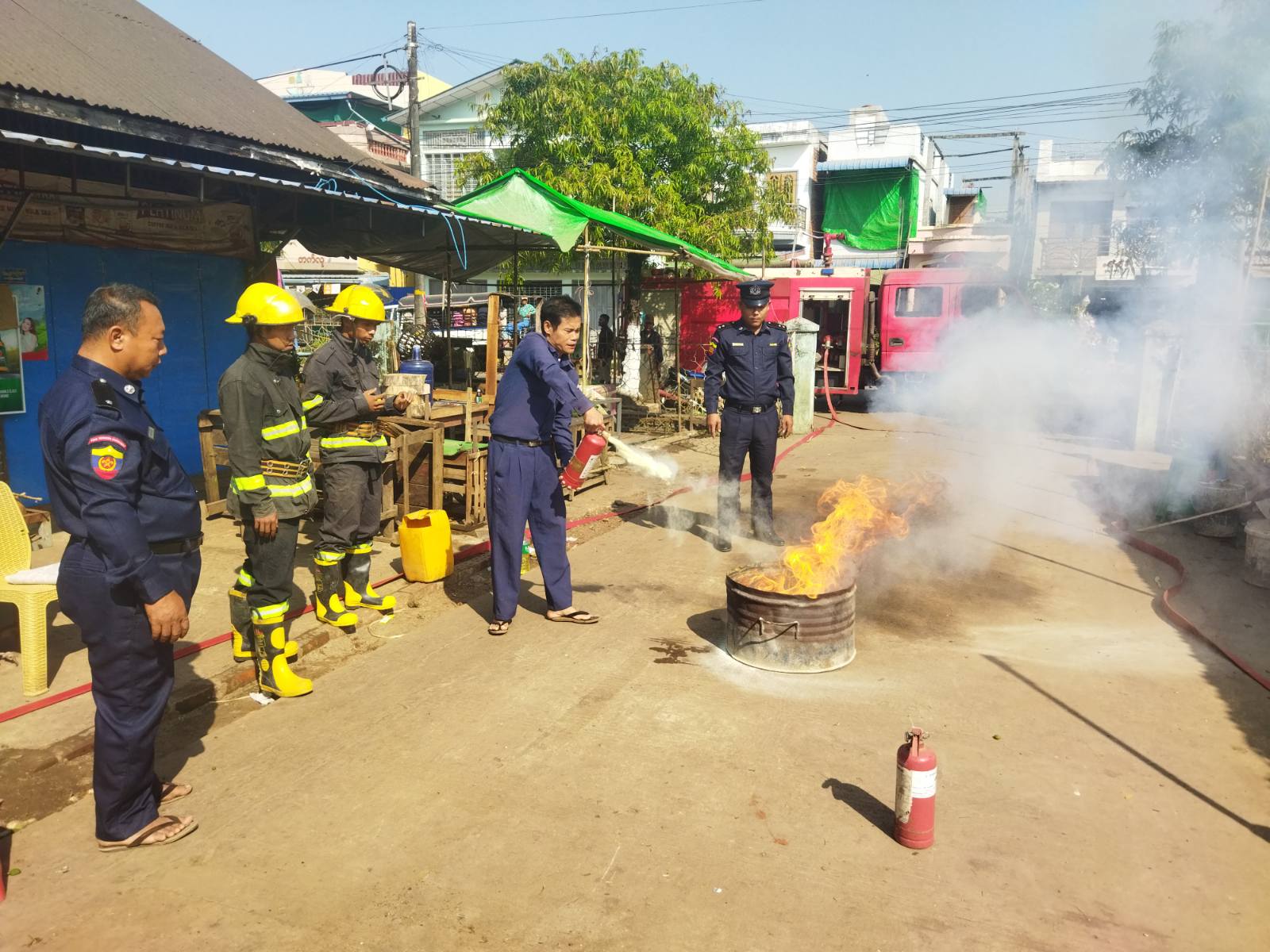 အဆိုပါ မီးဘေးအန္တရာယ်ကြိုတင်ကာကွယ်ရေး အသိပညာပေးခြင်းနှင့် ဇာတ်တိုက်လေ့ကျင့်ခြင်းသို့ မြို့နယ်စီမံခန့်ခွဲရေးနှင့်အုပ်ချုပ်ရေးကော်မတီဥက္ကဋ္ဌ ဦးဝင်းသန်းနှင့်အဖွဲ့ဝင်များဦးဆောင်၍ မြို့နယ်မီးသတ်ဦးစီးဌာနမှ ဒုတိယဦးစီးမှူးဦးလင်းထက်စိုးနှင့်တပ်ဖွဲ့ဝင်များသည် မြို့မစျေးအတွင်း မီးဘေးအန္တရာယ်ကြိုတင်ကာကွယ်ရေး ဇာတ်တိုက်လေ့ကျင့်ခြင်းနှင့် မီးဘေးလုံခြုံရေးအတွက် ပူးပေါင်းပါဝင် ဇာတ်တိုက်လေ့ကျင့်ခဲ့ခြင်းကို ဈေးတာဝန်ခံများ၊ ဈေးဝန်ထမ်းများ၊ ဈေးသူဈေးသားများဖြင့် ပူးပေါင်းဆောင်ရွက်ခဲ့ကြောင်း သိရသည်။