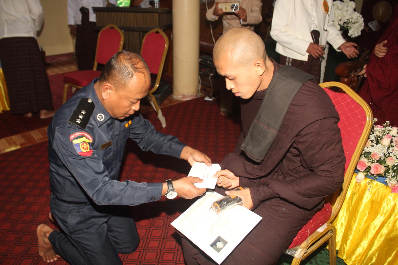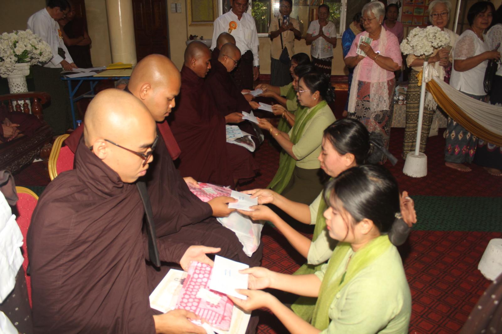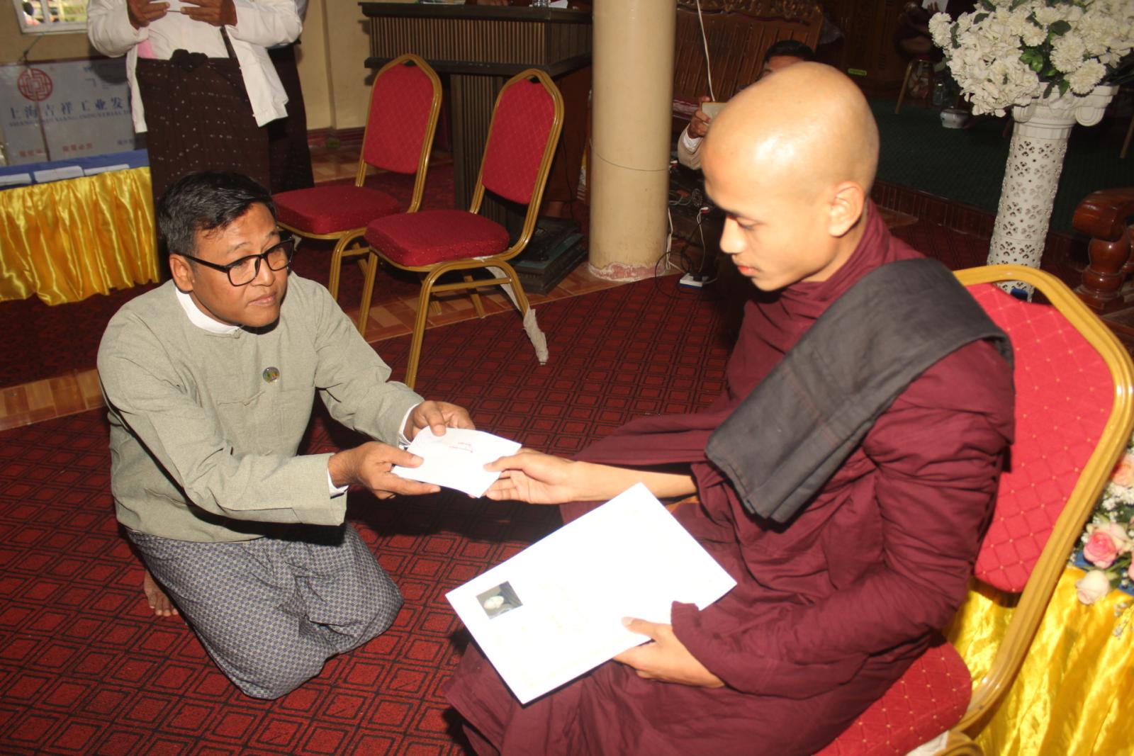 အခမ်းအနားတွင် နိုင်ငံတော်သြဝါဒါစရိယ စျေးဦးကျောင်းတိုက်ဆရာတော်ဦးသုမနထံမှငါးပါးသီလခံယူပြီး သြဝါဒကထာနာယူဆောက်တည်သည်။ ထို့နောက် မြို့နယ်စီမံခန့်ခွဲရေးနှင့်အုပ်ချုပ်ရေး ကော်မတီအတွင်းရေးမှူး ရဲမှူးအောင်နိုင်ဝင်းက သာသနာရေးဆိုင်ရာများလျောက်ထားခဲ့ပြီး ဓမ္မဝိနယ(၅၂)ကြိမ်မြောက်ပူဇော်ပွဲနှင့်စပ်လျဥ်း၍ မြို့နယ်ဓမ္မဝိနယအမှုဆောင်အဖွဲ့ဒုတိယဥက္ကဋ္ဌ ဦးချစ်တိုးက ကျေးဇူးတင်ဝမ်းမြောက်စကားပြောကြားသည်။ အဆိုပါဓမ္မဝိနယစာမေးပွဲကြီးတွင် ပထမကြီးတန်းအောင်(၃)ပါး၊ ပထမလတ်တန်းအောင်(၁၃)ပါး၊ ပထမငယ်တန်းအောင်(၁၇)ပါး၊ အခြေပြုမူလတန်း အောင်(၁၆)ပါးနှင့် သာမဏေမူလတန်းအောင်(၄၈)ပါး စုစုပေါင်း(၉၇)ပါးတို့ကို ပင့်ဆောင်ပူဇော်ကာ အောင်လက်မှတ်နှင့်တကွ စာအောင်ဆုများဆက်ကပ်လှူဒါန်းခဲ့ကြသည်။ ထို့နောက် လှူဒါန်းမှုအစုစုတို့အတွက် ရေစက်သွန်းချတရားနာယူခဲ့ကြကြောင်းသိရသည်။