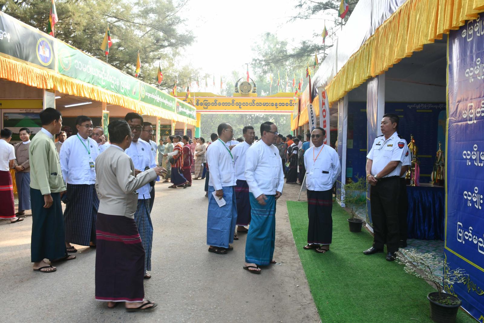 ထို့နောက် ပြည်နယ်ဝန်ကြီးချုပ်နှင့်တာဝန်ရှိသူများသည် အခမ်းအနားသို့တက်ရောက်လာသော တောင်သူဦးကြီး များအား ရင်းနှီးနွေးထွေးစွာတွေ့ဆုံနှုတ်ဆက်၍ အားပေးစကားများပြောကြားခဲ့ပြီး (၆၄)နှစ်မြောက်တောင်သူလယ်သမားနေ့အထိမ်းအမှတ် ခင်းကျင်းပြသရောင်းချသော စက်မှုလယ်ယာဦးစီးဌာန၏ လယ်ယာသုံးစက်ကိရိယာအရောင်းပြခန်း၊ စိုက်ပျိုးရေးဦးစီးဌာန၊ မြန်မာလယ်ယာဖွံ့ဖြိုးရေးဘဏ်၊ သမဝါယမဦးစီးဌာန၊ မြေစာရင်းဦးစီးဌာန၊ လူဝင်မှုကြီးကြပ်ရေး နှင့်ပြည်သူ့အင်အားဝန်ကြီးဌာန ပြည်နယ်ဦးစီးမှူးရုံး၊ ငါးလုပ်ငန်းဦးစီးဌာန၊ ဆည်မြောင်းနှင့်ရေအသုံးချမှုစီမံခန့်ခွဲရေးဦးစီးဌာန၊ မွေးမြူရေးနှင့်ကုသရေးဦးစီးဌာနတို့၏ တောင်သူအသိပညာပေးပြခန်းများ၊ ဒေသထွက်သဘာဝမြေဩဇာ အရောင်းပြခန်းများ၊ ကရင်ပြည်နယ်ဆီကုန်သည်များအသင်း၊ ဆန်ကုန်သည်များအသင်းတို့၏ အရောင်းပြခန်းများ၊ စိုက်ပျိုးမွေးမြူရေးထုတ်ကုန် ဟင်းသီး ဟင်းရွက်၊ အသား၊ ငါး၊ ဥအမျိုးမျိုးနှင့် နို့အရောင်းပြခန်းများ၊ ကိုယ်တိုင်စိုက်ပျိုး မွေးမြူထုတ်လုပ်သည့် ထုတ်ကုန်ပစ္စည်းအရောင်းပြခန်းများတွင် တောင်သူဦးကြီးများနှင့်ဒေသခံတိုင်းရင်းသားပြည်သူများ ကြည့်ရှုလေ့လာ ဝယ်ယူအားပေးနေမှုအခြေအနေများကို လှည့်လည်ကြည့်ရှုအားပေးခဲ့ကြကာ တာဝန်ရှိသူများအား လိုအပ်သည်များမှာကြားခဲ့ကြောင်း သတင်းရရှိသည်။