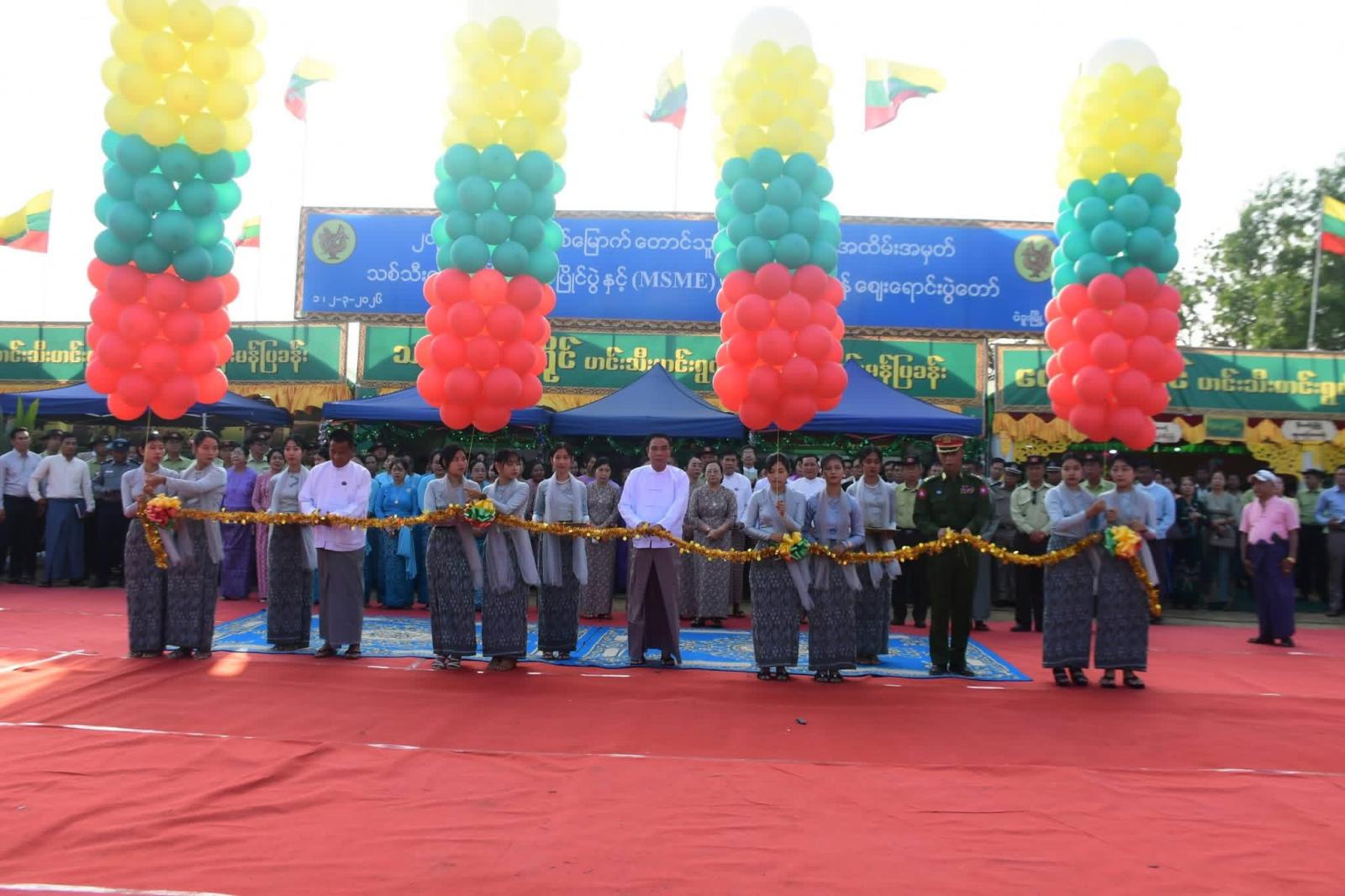ဦးစွာ တိုင်းဒေသကြီး ဝန်ကြီးချုပ် ဦးမျိုးဆွေဝင်း၊ လုံခြုံရေးနှင့် နယ်စပ်ရေးရာဝန်ကြီး ဗိုလ်မှူးကြီး ညီလန်းချိုနှင့် စီးပွားရေးရာဝန်ကြီး ဦးတင်ဦးတို့က (၆၄)နှစ်မြောက် တောင်သူလယ်သမားနေ့ အကြို သစ်သီးဝလံပန်းမန် ပြပွဲ၊ ပြိုင်ပွဲနှင့် MSMEs ဒေသထုတ်ကုန်ဈေးရောင်းပွဲတော် ဖွင့်ပွဲအခမ်းအနားအား ဖဲကြိုးဖြတ်ဖွင့်လှစ်ပေးခဲ့ကြပြီး အမှတ်()အခြေခံပညာ အထက်တန်းကျောင်းမှ ဂုဏ်ပြုဘင်ခရာတီးဝိုင်းနှင့် ဂုဏ်ပြုပန်းပွားအက အဖွဲ့တို့အား ဂုဏ်ပြုဆုငွေများ ပေးအပ်သည်။