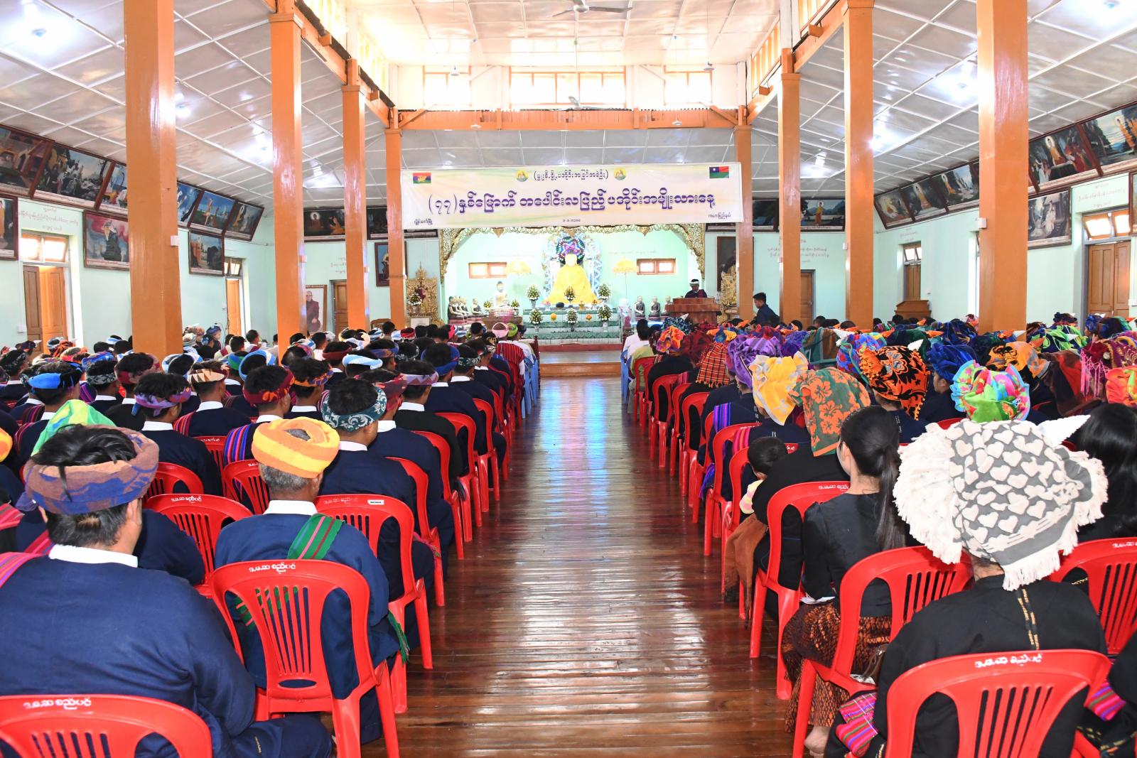 ဆက်လက်၍ ပြည်နယ်ဝန်ကြီးချုပ်နှင့် ဒေသကွပ်ကဲရေးမှူးတို့က ပအိုဝ်းအမျိုးသားနေ့ အခမ်းအနားအတွက် ချီးမြှင့်ငွေများပေးအပ်ရာ ပအိုဝ်းစာပေနှင့်ယဉ်ကျေးမှုကော်မတီဥက္ကဋ္ဌက လက်ခံရယူ၍ ဂုဏ်ပြုလွှာပြန်လည်ပေးအပ်သည်။