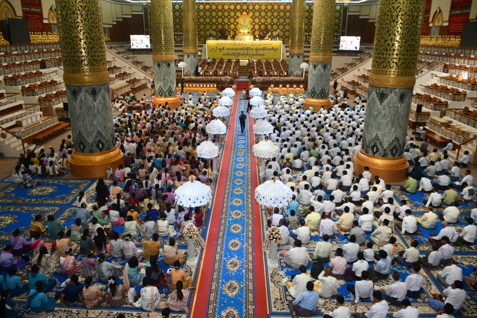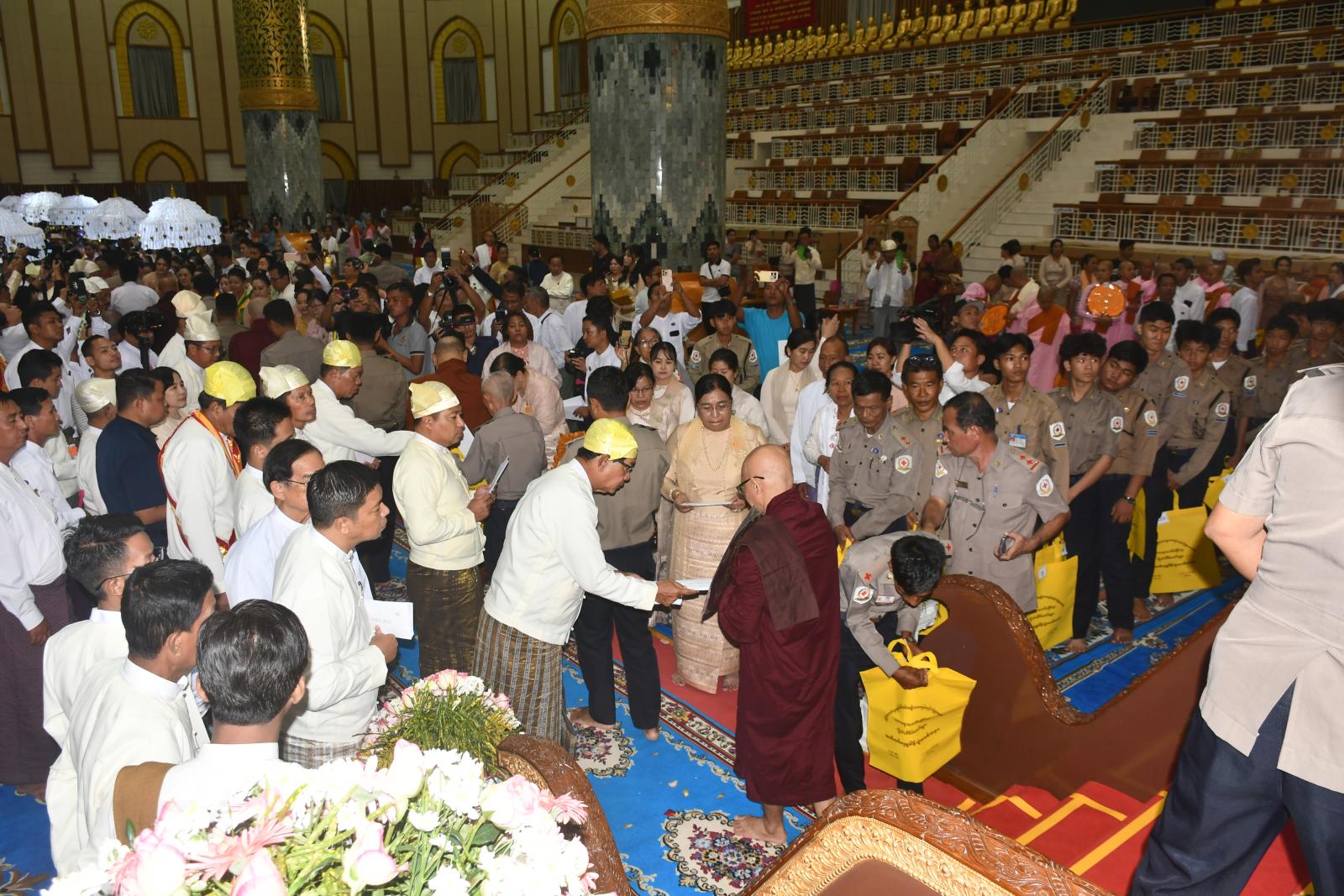 ယနေ့ကျင်းပသည့် သာသနာတော်ဆိုင်ရာ ဘွဲ့တံဆိပ် ချီးမြှင့်အပ်နှင်းပွဲတွင် မဟာဂန္ထဝါစကပဏ္ဍိတဘွဲ့ရ ဆရာတော် (၁၄)ပါးနှင့် သီလရှင် (၁)ပါး၊ ဂန္ထဝါစကပဏ္ဍိတဘွဲ့ရ ဆရာတော် (၁၁)ပါးနှင့် သီလရှင် (၂) ပါး၊ ဓမ္မကထိကဗဟုဇနဟိတဓရ ဘွဲ့တံဆိပ်တော်ရ (၃)ပါး၊ မဟာသဒ္ဓမ္မဇောတိကဓဇဘွဲ့ရ ဆရာတော် (၂၀) ပါးနှင့် သီလရှင် (၂)ပါး၊ သဒ္ဓမ္မဇောတိကဓဇဘွဲ့တော်ရဆရာတော် (၁၄)ပါး၊ မဟာကမ္မဋ္ဌာနာ စရိယ ဘွဲ့တံဆိပ်တော်ရ (၆)ပါး၊ ကမ္မဋ္ဌာနာစရိယ ဘွဲ့တံဆိပ်တော်ရ ဆရာတော် (၂)ပါး၊ မဟာသဒ္ဓမ္မ ဇောတိကဓဇဘွဲ့ရ အမျိုးသား (၁)ဦး၊ သဒ္ဓမ္မဇောတိကဓဇဘွဲ့ရ အမျိုးသား (၁) ဦးနှင့် အမျိုးသမီး (၃)ဦး၊ သီဟသုဓမ္မမဏိဇောတဓရဘွဲ့ရ အမျိုးသား (၁)ဦး၊ သီဟသုဓမ္မသိင်္ဂီဘွဲ့ရ အမျိုးသမီး (၅)ဦး၊ သုဓမ္မမဏိ ဇောတဓရဘွဲ့ရအမျိုးသား (၃)ဦး၊ သုဓမ္မသိင်္ဂီဘွဲ့ရ အမျိုးသမီး (၉)ဦးတို့အား ချီးမြှင့်အပ်နှင်းခဲ့ကြောင်း သိရသည်။