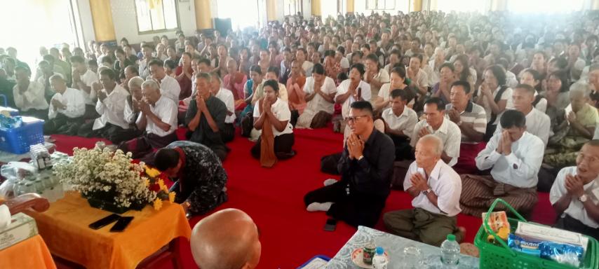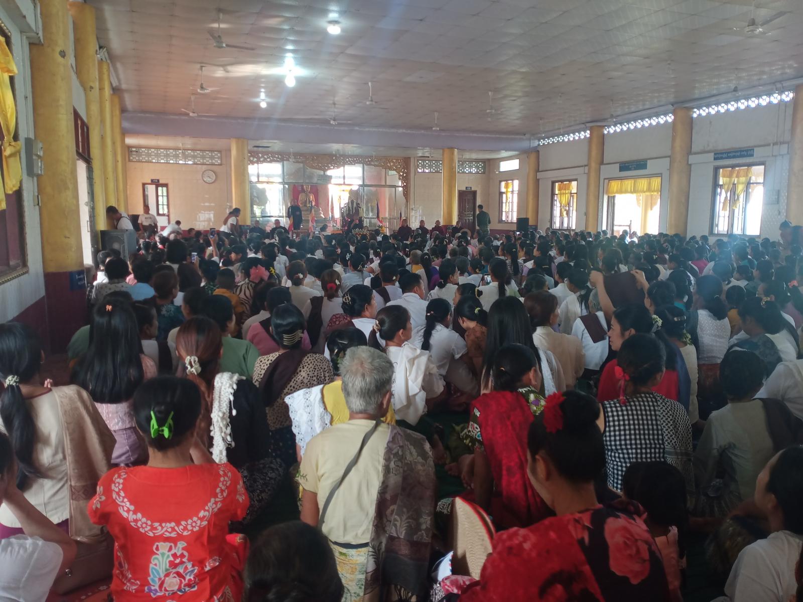 ဆက်လက်၍ တောင်ပေါ်ကျောင်းပရိယတ္တိစာသင်တိုက်၊ သဒ္ဓမ္မနုဂ္ဂဟသဟပုညကာရီ သာသနာ့ဗိမာန်၌ တရားသဘင်ပွဲဆင်ယင်ကျင်းပရာ မြောက်ဦးဆရာတော် ဘဒ္ဒန္တ ဝါယာမိန္ဒထံမှ ငါးပါးသီလကို ခံယူဆောက်တည်ခဲ့ကြပြီး အနုမောသနာတရားတော်များ နာယူကြည်ညိုခဲ့ကြသည်။