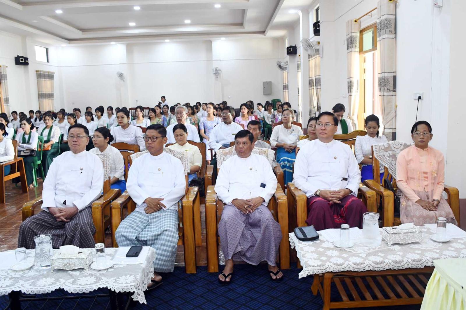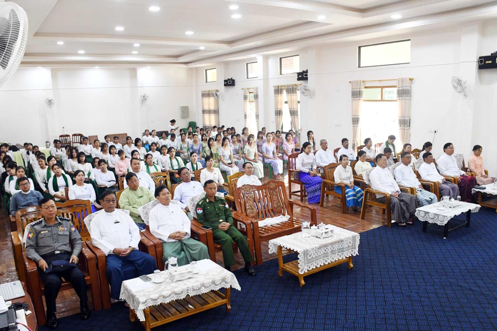 ထို့နောက် တိုင်းဒေသကြီးဝန်ကြီးချုပ်က ထူးချွန်ဆုရရှိသူသင်တန်းသူတစ်ဦးအား ဂုဏ်ပြုဆုချီးမြှင့်ပြီး သင်တန်းသူများအား သင်တန်းဆင်းလက်မှတ်များ ပေးအပ်သည်။