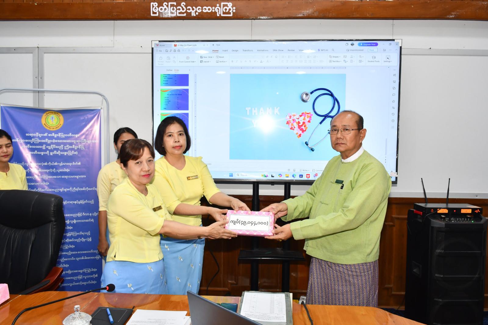 ထို့နောက် ပြည်သူ့ဆေးရုံတွင် ဆေးကုသမှုခံယူလျက်ရှိသည့် လူနာများအတွက် မတည် အလှူငွေ ပေးအပ်လှူဒါန်းမှုများအတွက် ဆေးရုံအုပ်ကြီးမှ ကျေးဇူးတင်စကား ပြန်လည် ပြောကြားပြီး ခရိုင်စီမံခန့်ခွဲရေးနှင့် အုပ်ချုပ်ရေးကော်မတီ ဥက္ကဋ္ဌက နိဂုံးချုပ် အမှာစကားပြောကြားကြောင်း သိရသည်။