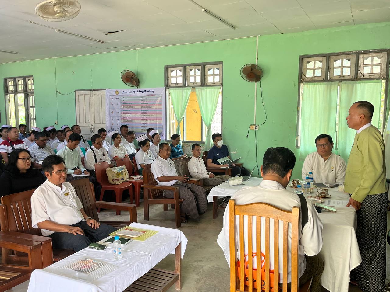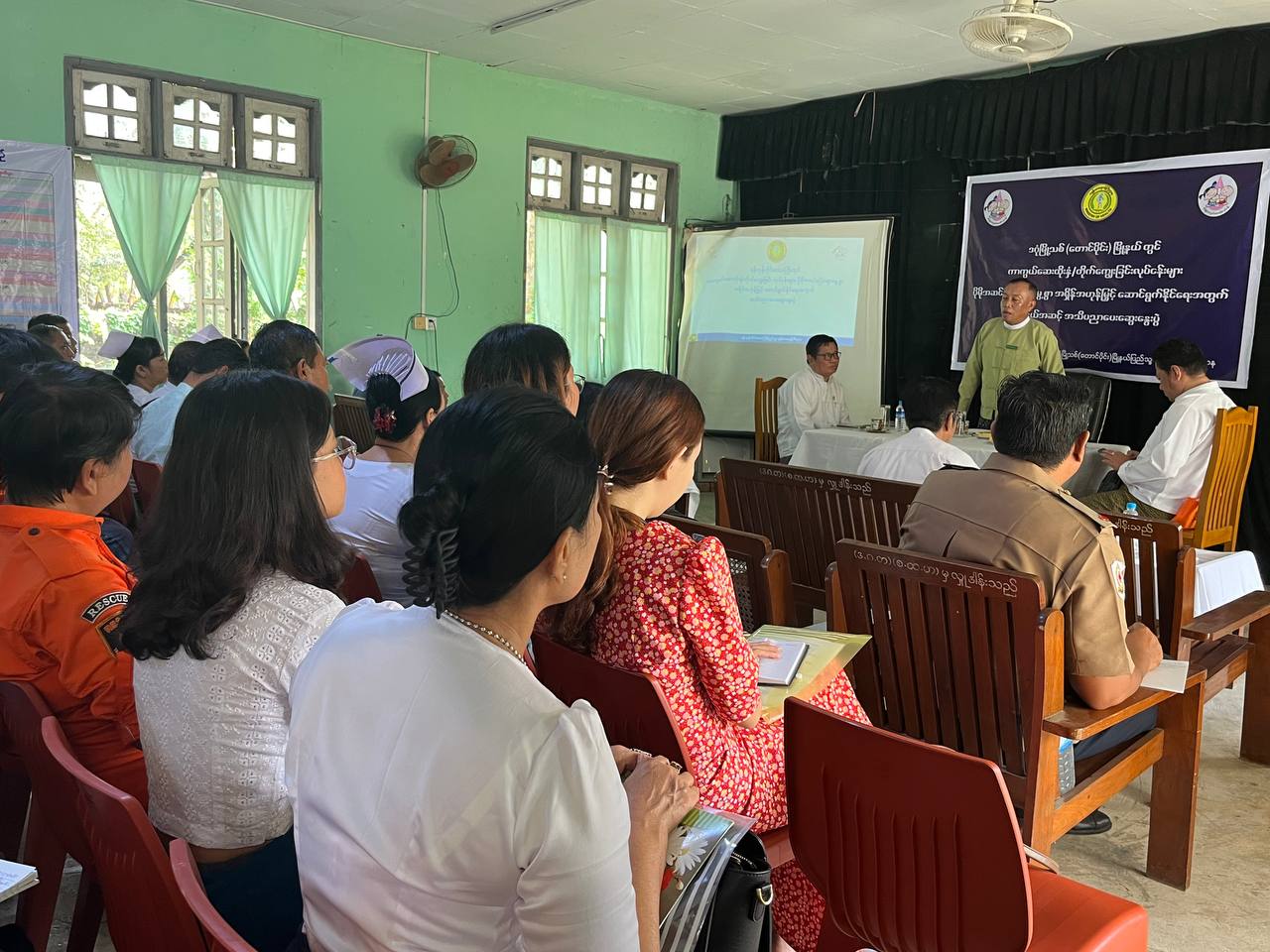 ဦးစွာ မြို့နယ်စီမံခန့်ခွဲရေးနှင့် အုပ်ချုပ်ရေးကော်မတီဥက္ကဋ္ဌ ဦးစန်းလွင်က အဖွင့်အမှာစကားပြောကြားပြီး မြို့နယ်ပြည်သူ့ကျန်းမာရေးဦးစီးဌာနမှူး ဒေါက်တာစိုးလင်းထူးက ကာကွယ်ဆေးထိုးလုပ်ငန်းများ ဆောင်ရွက်မှုနှင့် ပတ်သက်သည့် မှတ်တမ်းဗီဒီယိုကို ဖွင့်လှစ်ပြသ၍ ကာကွယ်ဆေးထိုးလုပ်ငန်းများ ပိုမိုအရှိန်အဟုန်မြှင့် ဆောင်ရွက်မည့် အစီအစဉ်များ ကာကွယ်ဆေးထိုးခြင်း အကျိုးကျေးဇူးများ ရှင်းလင်းဆွေးနွေးပြီး အခမ်းအနားသို့ တက်ရောက်လာကြသူများက သိလိုသည်များကို မေးမြန်းကြရာ တာဝန်ရှိသူများက ပြန်လည်ရှင်းလင်းဖြေကြားသည်။