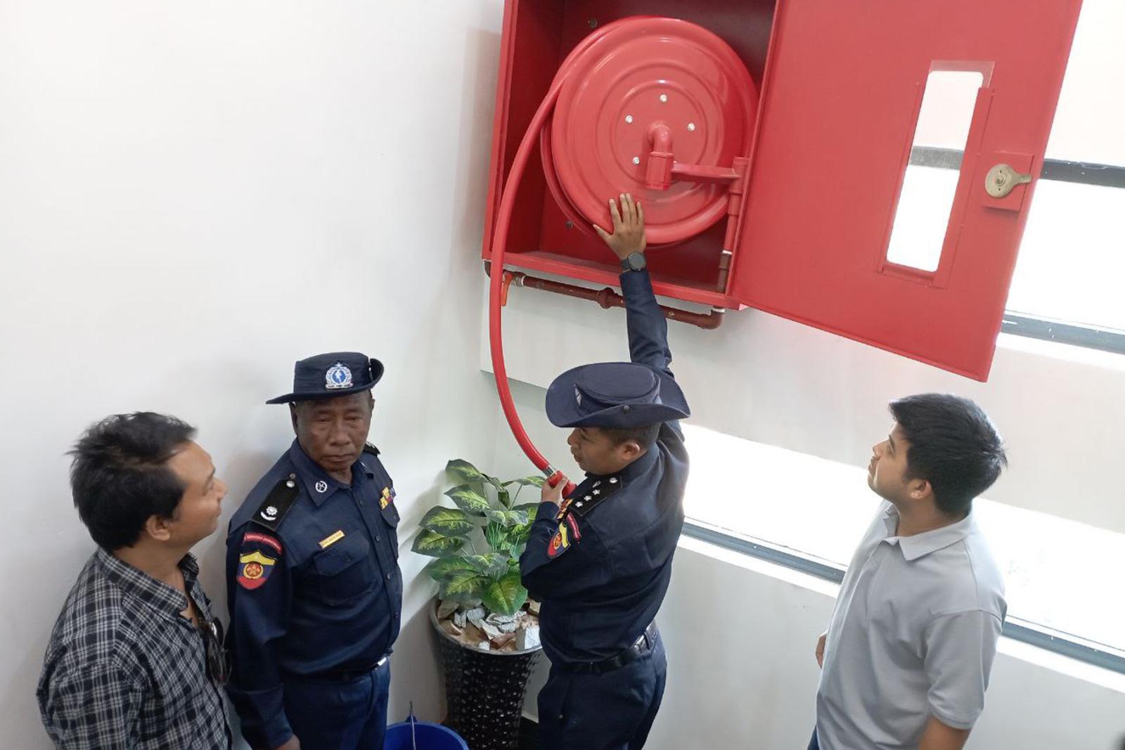 ဆက်လက်၍ မြို့နယ်မီးသတ်ဦးစီးမှူး ဦးကျော်မျိုးနှင့်တပ်ဖွဲ့ဝင်များက သက်ဆိုင်ရာဟိုတယ်များ၌ ရှိသင့်ရှိထိုက်သော ရေလှောင်ကန်များ၌ ရေသိုလှောင်ထားမှု၊ ဟိုတယ်အတွင်း မီးခိုးငွေ့များထွက်ပေါ်လာပါက သတိပေးစက်များတပ်ဆင်ထားမှု၊ မီးငြှိမ်းသတ်သည့် ရေပိုက်လိုင်းများ ကောင်းမွန်မှု၊ လျှပ်စစ်အန္တရာယ်ကာကွယ်ရေးဆောင်ရွက်ထားမှု စသည်တို့ကိုကြည့်ရှုစစ်ဆေးပြီး လိုအပ်သည်များကို ဆက်လက်ဆောင်ရွက်သွားရန် သက်ဆိုင်ရာတာဝန်ရှိသူများနှင့် ညှိနှိုင်းဆွေးနွေးခဲ့ကြောင်း သိရသည်။