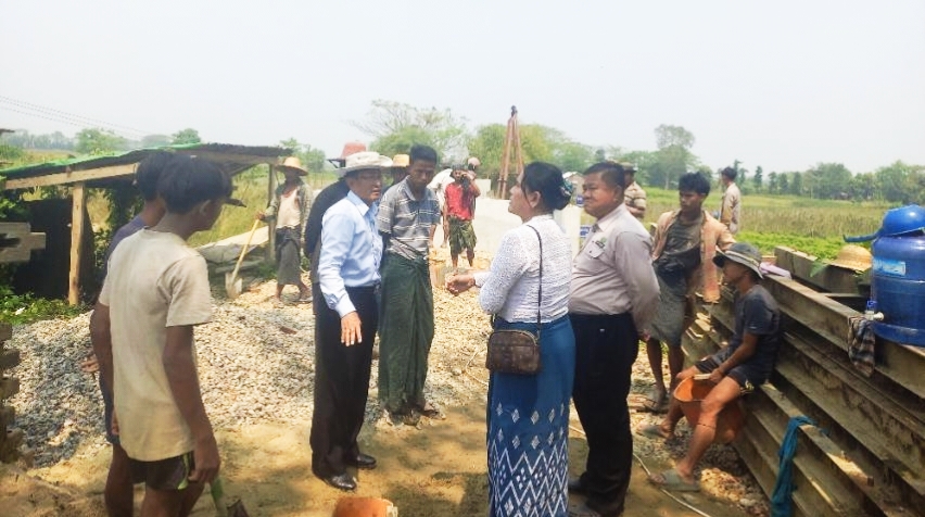 ဧရာဝတီတိုင်းဒေသကြီးအစိုးရအဖွဲ့ဝင်၊ လမ်းပန်းဆက်သွယ်ရေးဝန်ကြီး ဦးအောင်စန်းချစ်သည် တိုင်းဒေသကြီးကျေးလက်လမ်းဖွံ့ဖြိုးရေးဦးစီးဌာန ညွှန်ကြားရေးမှူး(မြို့ပြ)၊ ခရိုင်လက်ထောက် ညွှန်ကြားရေးမှူး(မြို့ပြ)တို့နှင့်အတူ ယမန်နေ့ မွန်းလွဲပိုင်းက မအူပင်ခရိုင်၊ ညောင်တုန်းမြို့နယ်တွင် ကျေးလက်လမ်းဖွံ့ဖြိုးရေးဦးစီးဌာန၊ တံတားတည်ဆောက်ရေး(ရုံးချုပ်)မှ တာဝန်ယူ တည်ဆောက်သည့် သောင်တန်း-မောင်းစု ကျေးရွာချင်းဆက်လမ်းပေါ်ရှိ မောင်းစုချောင်းတံတား တည်ဆောက်ရေးလုပ်ငန်းအခြေအနေများအား ကွင်းဆင်းကြည့်ရှုစစ်ဆေးခဲ့ပြီး စံချိန်စံညွှန်း ပြည့်မီရေးနှင့် သတ်မှတ်ကာလအတွင်းပြီးစီးရေးတို့ကို မှာကြားခဲ့သည်။