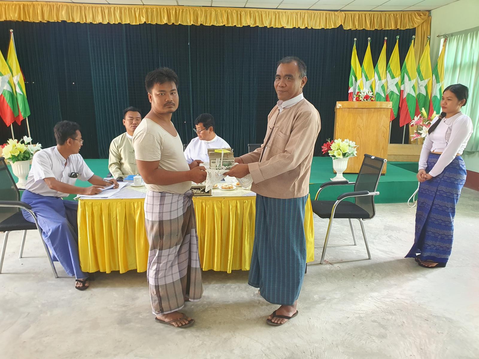 ဦးစွာ စီမံကိန်းဒါရိုက်တာ ရေအရင်းအမြစ်နှင့်မြစ်ချောင်းများ ဖွံ့ဖြိုးတိုးတက်ရေးဦးစီးဌာန ညွှန်ကြားရေးမှူး ဦးဇော်လွင်က နစ်နာကြေးပေးအပ်မည့် အစီအစဥ်နှင့်ပတ်သက်၍ ရှင်းလင်းဆွေးနွေးပြောကြားခဲ့သည်။ ထို့နောက် စီမံကိန်းဒါရိုက်တာ ညွှန်ကြားရေးမှူး ဦးဇော်လွင်၊ မြို့နယ်စီမံခန့်ခွဲရေးနှင့် အုပ်ချုပ်ရေးကော်မတီဥက္ကဋ္ဌ ဦးမြင့်လှိုင်နှင့် တာဝန်ရှိသူများက တွံတေးတူးမြောင်းဖွံ့ဖြိုးတိုးတက်ရေး စီမံကိန်းဧရိယာနှင့် မလွတ်ကင်းသည့် ဆိပ်ကြီးအရှေ့ရပ်ကွက် တွံတေးတူးမြောင်းပိုင်မြေနေရှိ အဆောက်အဦနှင့် မြေနေရာများအတွက် ရပ်ကွက်နေပြည်သူ ၁၉ ဦးထံ နစ်နာကြေးများအား တစ်ဦးချင်းစီ စနစ်တကျပေးအပ်ခဲ့သည်။