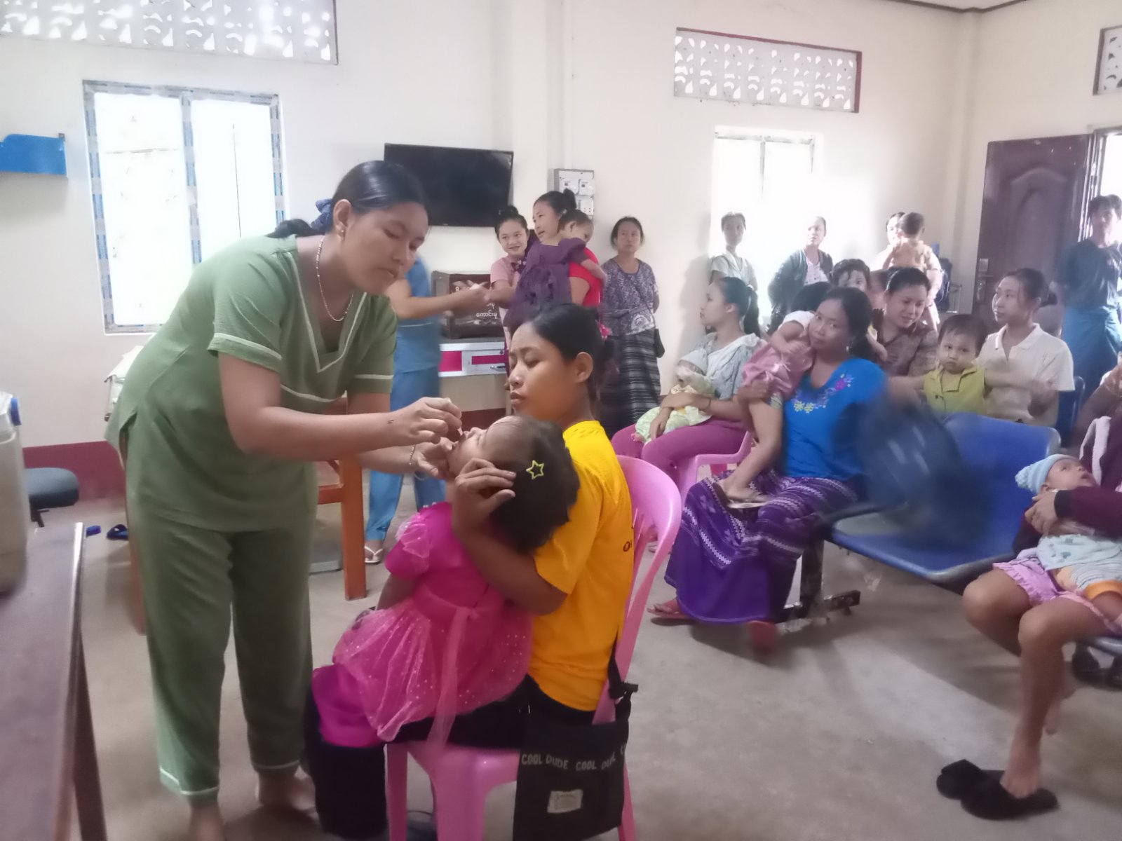 ပြည်သူ့ကျန်းမာရေးဌာနမှ ကျန်းမာရေးဆရာမများနှင့် သားဖွားဆရာမတို့က ကိုယ်ဝန်ဆောင် မိခင်များနှင့် မွေးကင်းစမှ (၁) နှစ်ခွဲအောက် ကလေးငယ်များအား လစဉ်သတ်မှတ်ရက်များတွင် ကာကွယ်ဆေးများကို ဆက်လက်ထိုးနှံတိုက်ကျွေးပေးသွားမည်ဖြစ်ကြောင်း ပြည်သူ့ကျန်းမာရေးဌာန တာဝန်ရှိသူတစ်ဦးထံမှ သိရသည်။