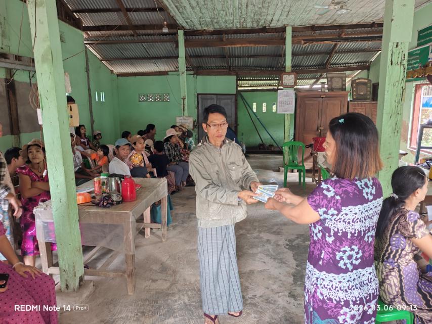 ထိုသို့ ထုတ်ပေးရာတွင် အောက်တိုဘာ၊ နိုဝင်ဘာ၊ ဒီဇင်ဘာ သုံးလစာအတွက် တစ်ဦးလျှင် ငွေကျပ် ၆၀,၀၀၀/- နှုန်းဖြင့် ယာယီနေရပ်စွန့်ခွာပြည်သူတို့အား မြို့နယ်စီမံခန့်ခွဲရေးနှင့် အုပ်ချုပ်ရေးကော်မတီအဖွဲ့ဝင်များနှင့် ဌာနဆိုင်ရာတာဝန်ရှိသူများက အဖွဲ့သုံးဖွဲ့ခွဲ၍ ကျေးရွာအုပ်စုအလိုက် ကွင်းဆင်းထုတ်ပေးခဲ့ကြောင်း သိရသည်။