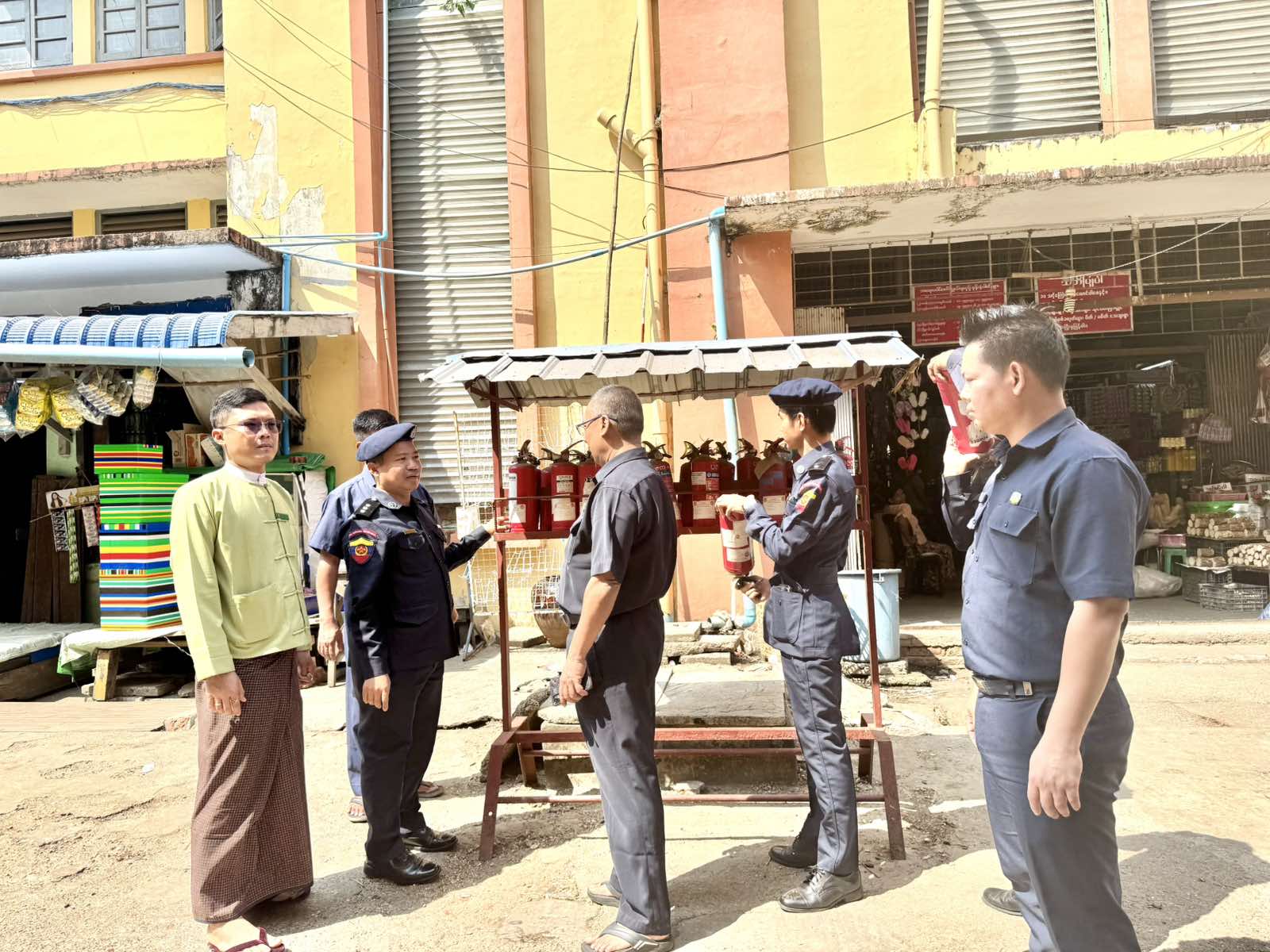 ထိုသို့ ဆောင်ရွက်ရာတွင် မြို့နယ်အထွေထွေအုပ်ချုပ်ရေးဦးစီးဌာန ဒုတိယမြို့နယ်အုပ်ချုပ်ရေးမှူး ဦးအောင်သူ၊ မြို့နယ်မီးသတ်ဦးစီးမှူး ဦးကျော်သန်းဌေးနှင့် တပ်ဖွဲ့ဝင်များ၊ မြို့နယ်စည်ပင်သာယာအုပ်ချုပ်ရေးမှူး ဦးကြည်ဖေလင်း၊ ပုဇွန်တောင်ဈေးတာဝန်ခံနှင့် စည်ပင်ဝန်ထမ်းများ ပါဝင်သည့် ပူးပေါင်းအဖွဲ့သည် ပုဇွန်တောင်စျေးအတွင်းရှိ မီးသတ်ရေလှောင်ကန်နှင့် မီးသတ်ပိုက်များအား စစ်ဆေးခြင်း၊ မီးသတ်ဆေးဘူးများ စစ်ဆေးခြင်း၊ လျှပ်စစ်မီတာများနှင့် မီးကြိုးများ စစ်ဆေးခြင်း စသည့်မီးဘေးလုံခြုံရေးတို့ကို ကွင်းဆင်းဆောင်ရွက်ခဲ့ကြသည်၊၊