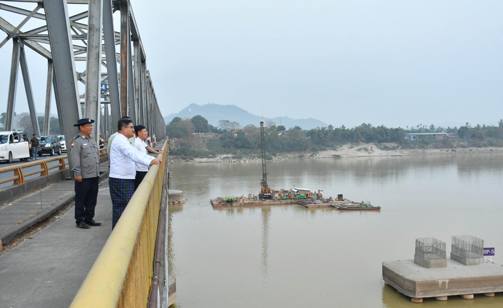 ယင်းနောက် ပြည်နယ်ဝန်ကြီးချုပ်နှင့် အဖွဲ့ဝင်များသည် ဗလမင်းထင် အမှတ်(၁) တံတားမှတစ်ဆင့် ဗလမင်းထင် အမှတ် (၂) တံတား ရေလယ်တိုင်များ တည်ဆောက်နေမှုအခြေအနေများနှင့် မြစ်ကြောင်းရှင်းလင်းရေးလုပ်ငန်းများ ဆောင်ရွက်နေမှုအခြေအနေများ၊ မြစ်ကြောင်းရှင်းလင်းရေးလုပ်ငန်းကြောင့် ရေစီးကြောင်းပြောင်းလဲမှုဖြစ်ပေါ်ပြီး ဝိုင်းမော်ဘက်ကမ်းအား တိုက်စားနိုင်မှု လျော့ကျနိုင်မည့် အခြေအနေများကို ကြည့်ရှုစစ်ဆေးခဲ့ကြကြောင်း သိရသည်။