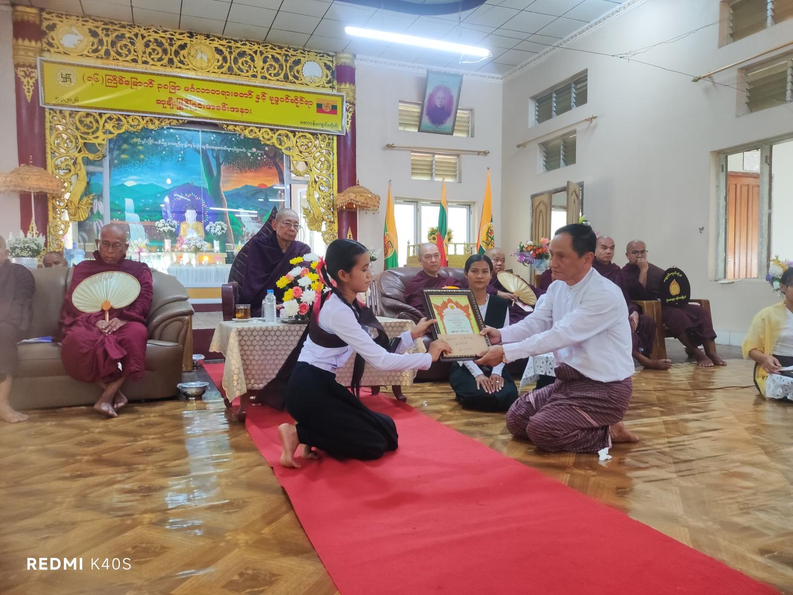 ယင်းနောက် ဆုများကိုချီးမြှင့်ရာ ပြည်နယ်ပထမဆု(မြန်မာဘာသာ) အငယ်တန်း၊ မွန်ဘာသာအငယ်တန်းပြည်နယ် ဒုတိယဆုရမြန်မာ ဘာသာအငယ်တန်း၊ မွန်ဘာသာအငယ်တန်း ဆုရသူ များအာဆုချီးမြှင့်ပြီး ပြည်နယ်အဆင့် ဆုရရှိသူ ကျောင်းသား၊ ကျောင်းသူ (၁၀) ဦးတို့အား ဂုဏ်ထူးဆောင်လက်မှတ်နှင့် ဆုများကိုတာဝန်ရှိသူများက ဆုများအသီးသီးချီးမြှင့် ပေးအပ်ခဲ့ကြပြီး (၃၈) ဖြာမင်္ဂလာတရားတော်နှင့် ဗုဒ္ဓဝင်စာပေများကို ကြိုးစားပြီး သင်ကြားပေးခဲ့သော ဆရာ၊ ဆရာမ (၈) ဦး၊ ကျောင်းသား၊ ကျောင်းသူ (၁၅) ဦးတို့အား ဂုဏ်ထူးဆောင် လက်မှတ်နှင့် ဆုငွေများ အသီးသီးပေးအပ်ခဲ့ကြောင်း သိရသည်။
