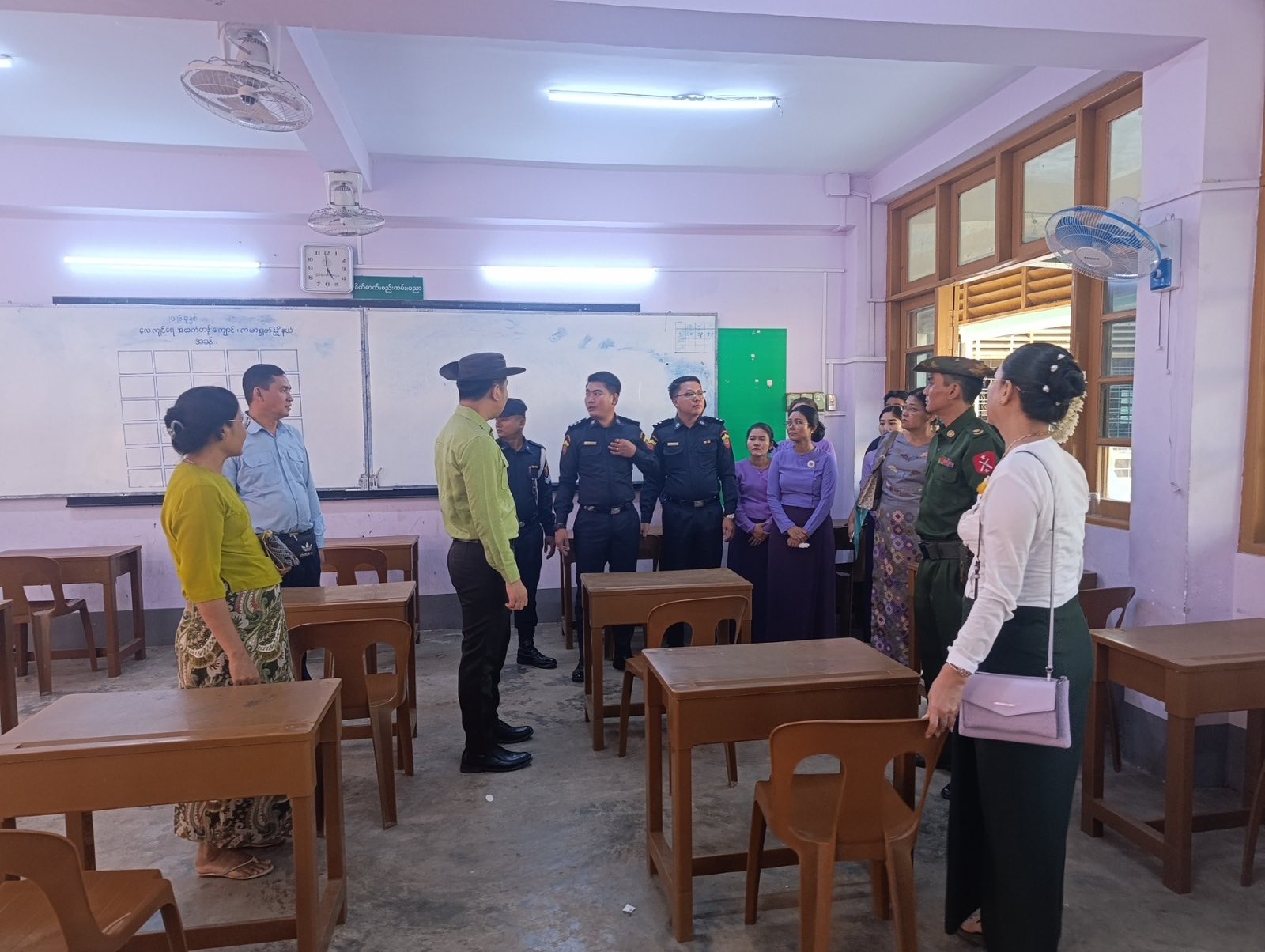 ထို့သို့ဆောင်ရွက်ရာတွင် မြို့နယ်စီမံခန့်ခွဲရေးနှင့်အုပ်ချုပ်ရေးကော်မတီဥက္ကဋ္ဌ ဦးကောင်းမြင့်သူဦးဆောင်၍ အဖွဲ့ဝင် ဗိုလ်မှူး ဟန်လင်းအောင်နှင့် မြို့နယ်အထွေထွေအုပ်ချုပ်ရေးဦးစီးဌာနမှ ဝန်ထမ်းများ၊ မြို့နယ်စီမံခန့်ခွဲရေးနှင့်အုပ်ချုပ်ရေးကော်မတီအဖွဲ့ဝင်များ၊ ကမာရွတ်မြို့နယ် မီးသတ်ဦးစီးမှူးနှင့် သန္ဓေတပ်ဖွဲ့ဝင်များ၊ မြို့နယ်စည်ပင်သာယာအုပ်ချုပ်ရေးမှူးနှင့်အဖွဲ့ဝင်များ၊ မြို့နယ်လျှပ်စစ်ဓာတ်အားပေး ကော်ပိုရေးရှင်းမှဝန်ထမ်းများ၊ မြို့နယ်အမျိုးသမီးရေးရာအဖွဲ့ဝင်များနှင့်ပူးပေါင်း၍ စာမေးပွဲဖြေဆိုမည့်အခန်းများအား မီးဘေးကြိုတင်ကာကွယ်ရေးနှင့် လျှပ်စစ်အန္တရာယ်ကင်းရှင်းစေရေးအတွက် စစ်ဆေးခြင်းနှင့် ဆရာ၊ ဆရာမများအား မီးသတ်ဆေးဗူးအသုံးပြု၍ လက်တွေ့မီးငြှိမ်းသတ်ခြင်းများ ဆောင်ရွက်ခဲ့ပါကြောင်း သိရှိရပါသည်။
