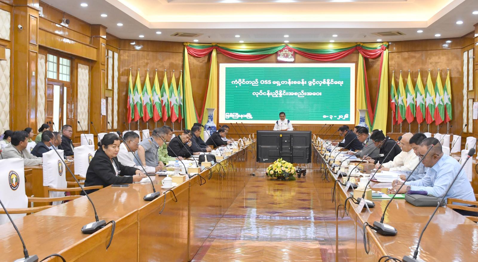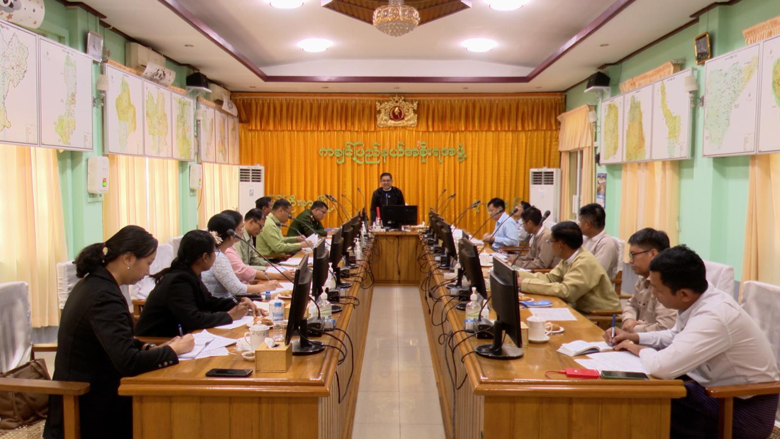ကချင်ပြည်နယ်အတွင်း တဖက်နိုင်ငံသို့ သွင်းကုန်ပစ္စည်းများနှင့်ပတ်သက်၍ တရားဝင်သွင်းကုန်လိုင်စင်ဖြင့် တင်သွင်းခွင့်ပြုနိုင်ရေးနှင့် စစ်ဆေးဆောင်ရွက်နိုင်ရေးတို့အတွက် မိုင်းနားအခြေ ပြုကံပိုင်တည်ကုန်သွယ်ရေးစခန်း ယာယီယာဉ်စစ်ဆေးကွင်း ဖွင့်လှစ်ဆောင်ရွက်ရာတွင် လုပ်ငန်းများ အဆင်ပြေချောမွေ့စွာ ဆောင်ရွက်နိုင်ရေးအတွက် လုပ်ငန်းညှိနှိုင်းအစည်းအဝေးကို ယမန်နေ့ နံနက် ၈ နာရီက ပြည်နယ်အစိုးရအဖွဲ့ရုံး မလိခခန်းမ၌ ကျင်းပပြုလုပ်ခဲ့သည်။