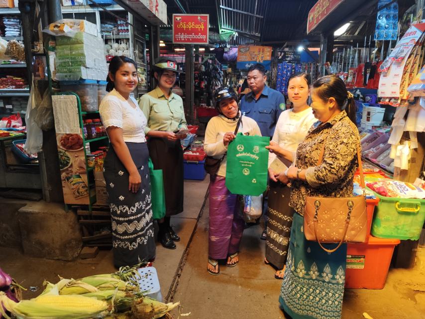 ထိုသို့ဆောင်ရွက်ရာတွင် ဈေးဝယ်လာရောက်သူများနှင့် စျေးရောင်းချသူများအား တနင်္လာနေ့တိုင်းပလတ်စတစ်အိတ်များ အသုံးပြု၍ ဈေးရောင်းဈေးဝယ်ခြင်းမပြုလုပ်ကြရန် အသိပညာပေးခြင်း၊ ဈေးဝယ်လာသူများထံမှ ပလတ်စတစ်အိတ်များနှင့် Recycle Bag များ လဲလှယ်ပေးခြင်းနှင့် လက်ကမ်းစာစောင်ဖြန့်ဝေခြင်းတို့ကို ဆောင်ရွက်ခဲ့ကြောင်း သိရသည်။