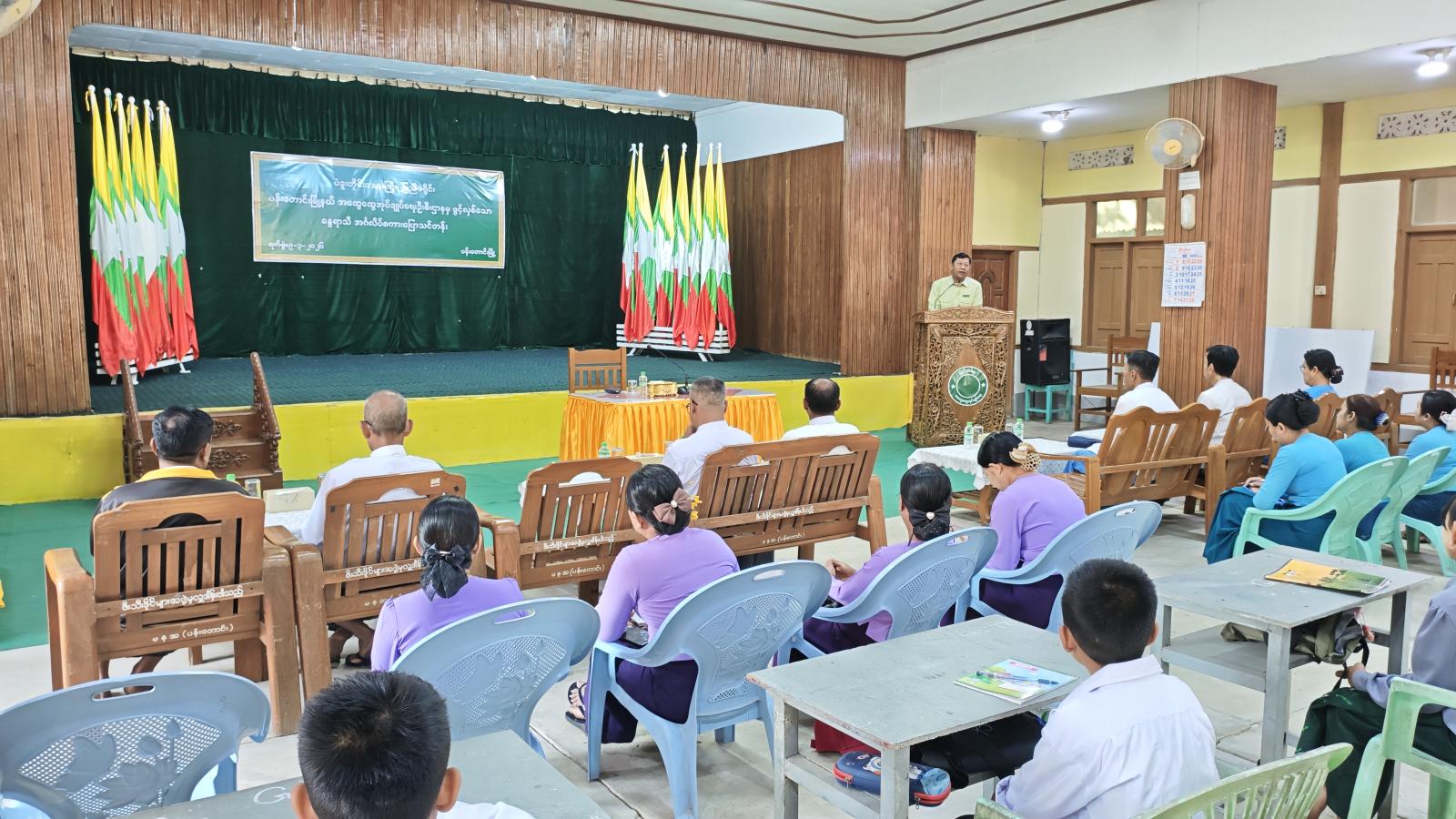 ပဲခူးတိုင်းဒေသကြီး၊ ပြည်ခရိုင်၊ ပန်းတောင်းမြို့နယ် အထွေထွေအုပ်ချုပ်ရေးဦးစီးဌာန အစည်းအဝေးခန်းမတွင် မြို့နယ်အတွင်းရှိ ကျောင်းသား၊ ကျောင်းသူ၊ လူငယ်မောင်မယ်များနှင့် ရုံးဝန်ထမ်းများ နွေရာသီကျောင်းပိတ်ရက်ကာလအတွင်း အချိန်ကိုအကျိုးရှိစွာ အသုံးချနိုင်စေရန်နှင့် အင်္ဂလိပ်စာအရည်အသွေးမြင့်မားလာစေရန် ရည်ရွယ်၍ ဖွင့်လှစ်သည့် နွေရာသီအင်္ဂလိပ်စကားပြောသင်တန်း ဖွင့်ပွဲအခမ်းအနားကို ယမန်နေ့နံနက်ပိုင်းက ကျင်းပပြုလုပ်သည်။