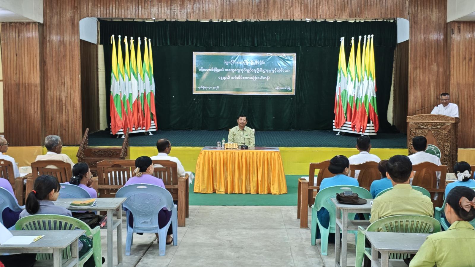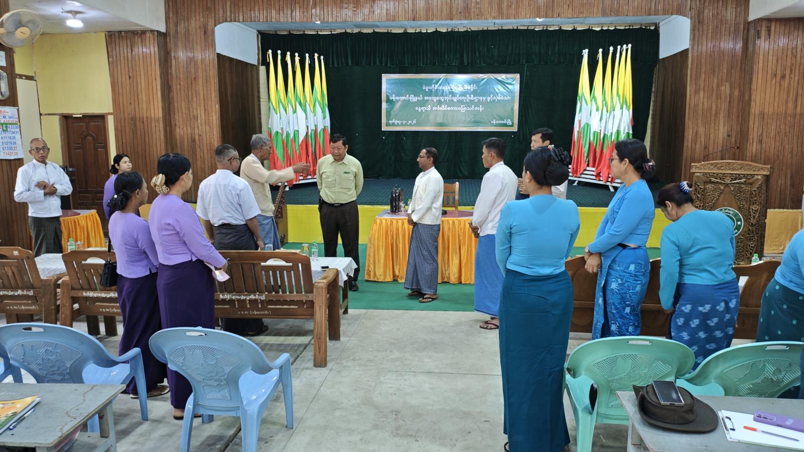 ရှေးဦးစွာ မြို့နယ်စီမံခန့်ခွဲရေးနှင့်အုပ်ချုပ်ရေးကော်မတီဥက္ကဋ္ဌ ဦးအောင်သူရက အဖွင့်အမှာစကားပြောကြားခဲ့ပြီး သင်တန်းဖွင့်လှစ်ရခြင်းနှင့် စပ်လျဉ်း၍ သင်တန်းနည်းပြ ဆရာဦးဝဏ္ဏထွန်းနှင့် ဒေါက်တာဦးရဲမင်းဦးတို့မှ မိမိတို့၏ ဗဟုသုတအမြင်များ ကျယ်ပြန့်လာစေရန်နှင့် ခေတ်မီဖွံ့ဖြိုးတိုးတက်သော လူ့အဖွဲ့အစည်းတွင် ယုံကြည်မှုရှိစွာ ပြောဆိုဆက်သွယ်နိုင်စေရန်ရည်ရွယ်၍ ယခုကဲ့သို့ သင်တန်းကို ဖွင့်လှစ်ပေးရခြင်းဖြစ်ကြောင်း ရှင်းလင်းပြောကြားသည်။