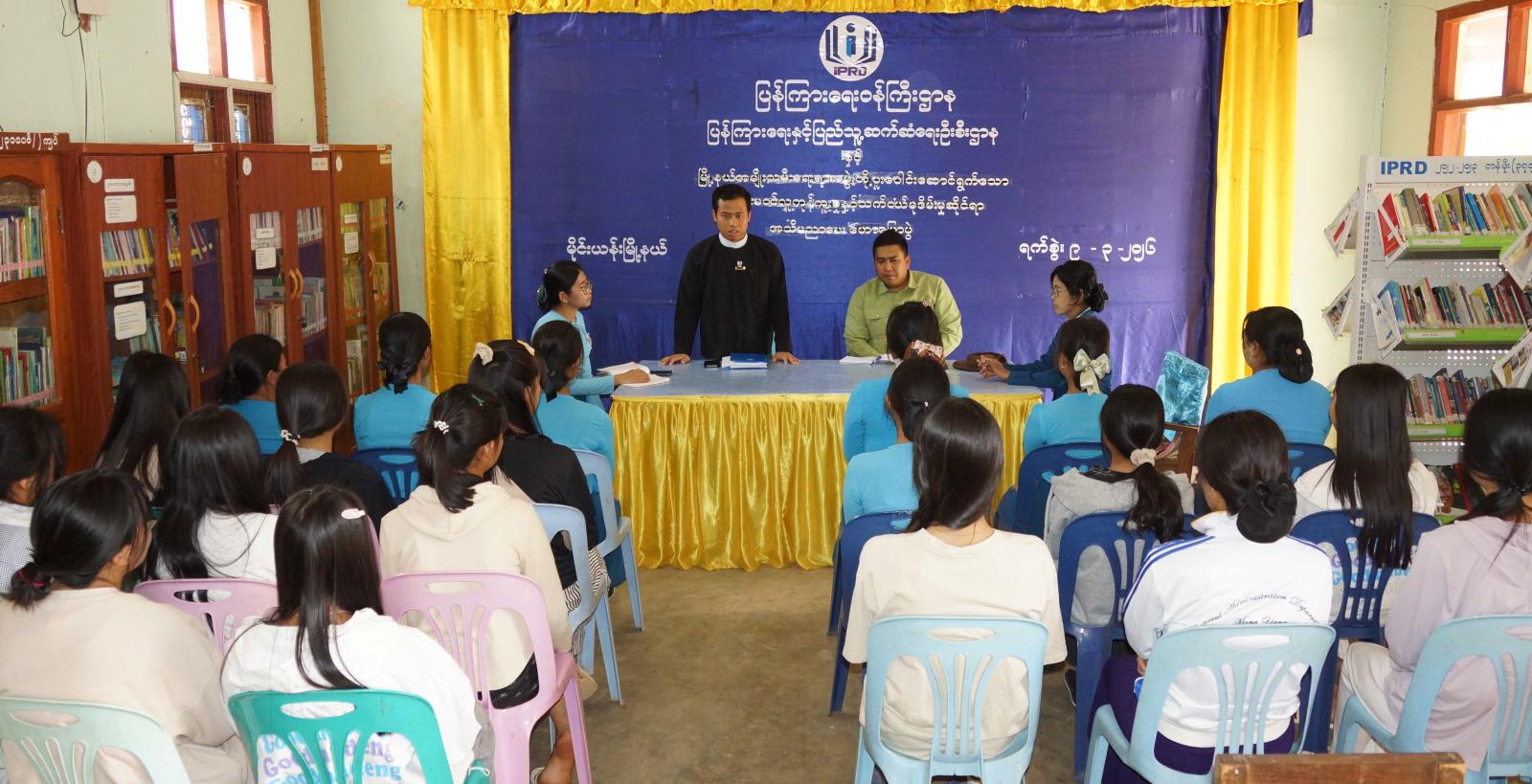 ရှမ်းပြည်နယ်(အရှေ့ပိုင်း)၊ မိုင်းယန်းခရိုင်၊ မိုင်းယန်းမြို့နယ် လူထုအခြေပြုဗဟိုဌာန၌ တရားမဝင်လူကုန်ကူးမှုနှင့် သက်ငယ်မုဒိမ်းမှုဆိုင်ရာအသိပညာပေးဟောပြောပွဲ၊ စာအုပ်စာစောင်ပြပွဲနှင့်အသိပညာပေးနံရံကပ်စာစောင်များပြသခြင်းကို ယမန်နေ့ နေ့လယ် ၂ နာရီက မြို့နယ်ပြန်ကြားရေးနှင့်ပြည်သူ့ဆက်ဆံရေးဦးစီးဌာ (Community Centre)ခန်းမ၌ ကျင်းပသည်။