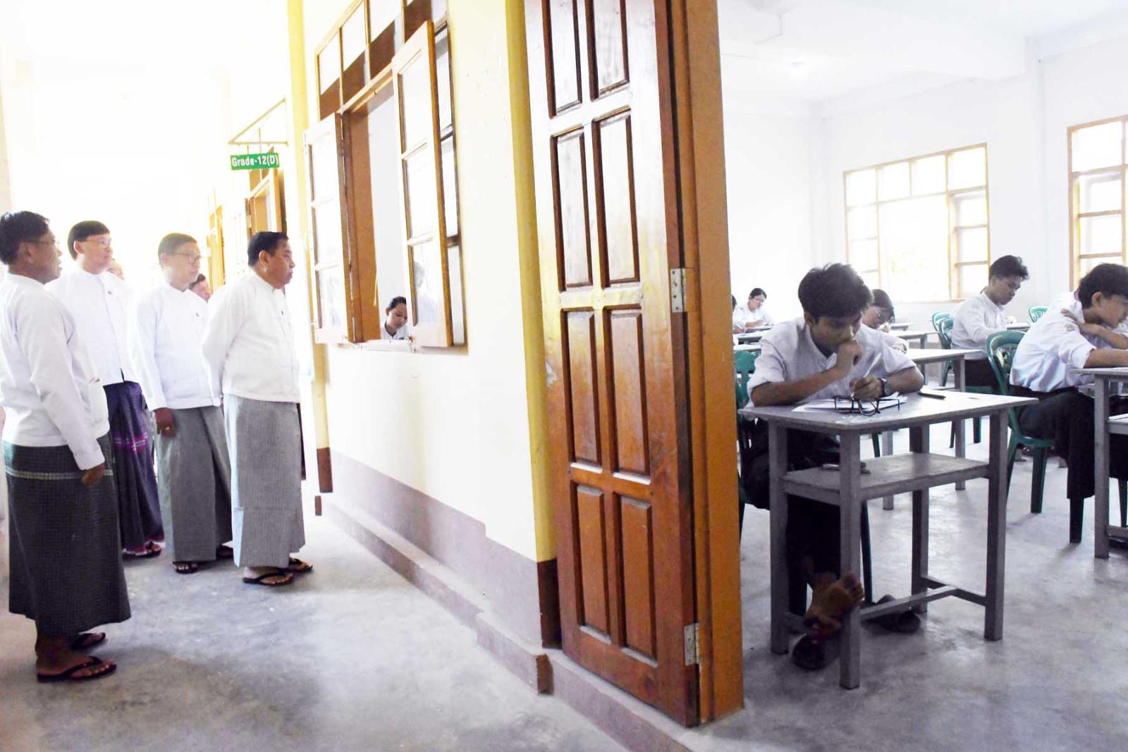 ဦးစွာတိုင်းဒေသကြီးပညာရေးမှူးရုံးမှညွှန်ကြားရေးမှူး ဦးဝင်းနောင်က စာမေးပွဲဖြေဆိုနေစဉ်ကာလအတွင်း ဆောင်ရွက်ထားရှိမှုအခြေအနေများနှင့်ဖြေဆို/ပျက်ကွက်သူ ဦးရေစာရင်းများအား ရှင်းလင်းတင်ပြရာ တိုင်းဒေသကြီးဝန်ကြီးချုပ်က စာမေးပွဲအခန်းတာဝန်ကျ ကြီးကြပ်ရေးမှူးများနှင့် သက်ဆိုင်ရာတာဝန်ရှိသူများအား ကျောင်းသား/ကျောင်းသူများ စိတ်အေးချမ်းသာစွာဖြေဆိုနိုင်ရေးအတွက် လိုအပ်သည်များကို ဖြည့်ဆည်းဆောင်ရွက်ပေးရန်လိုအပ်ကြောင်း၊ စာမေးပွဲ ဖြေဆိုနေသည့်ကာလအတွင်း စာဖြေခန်းအတွင်းအပြင် သန့်ရှင်းရေး၊ လေဝင်လေထွက်ကောင်းမွန်ရေးနှင့် အလင်းရောင်လုံလောက်စွာရရှိရေး ဆောင်ရွက်ပေးရန်၊ စာဖြေသူနှင့်စာမေးပွဲလုပ်ငန်းအနှောင့်အယှက်မဖြစ်စေရေး ဂရုပြုဆောင်ရွက်ပေးရန်၊ ကျောင်းသား/ကျောင်းသူများ၏ ကျန်းမာရေးအားအလေးထားဆောင်ရွက်ပေးရန် လိုအပ်ကြောင်း၊ စာမေးပွဲကိုစာမေးပွဲ စည်းမျဉ်းစည်းကမ်းများနှင့်အညီ ဖြေဆိုနိုင်ရေးဝိုင်းဝန်းကူညီဆောင်ရွက်ပေးရန် လိုအပ်ကြောင်း မှာကြားသည်။