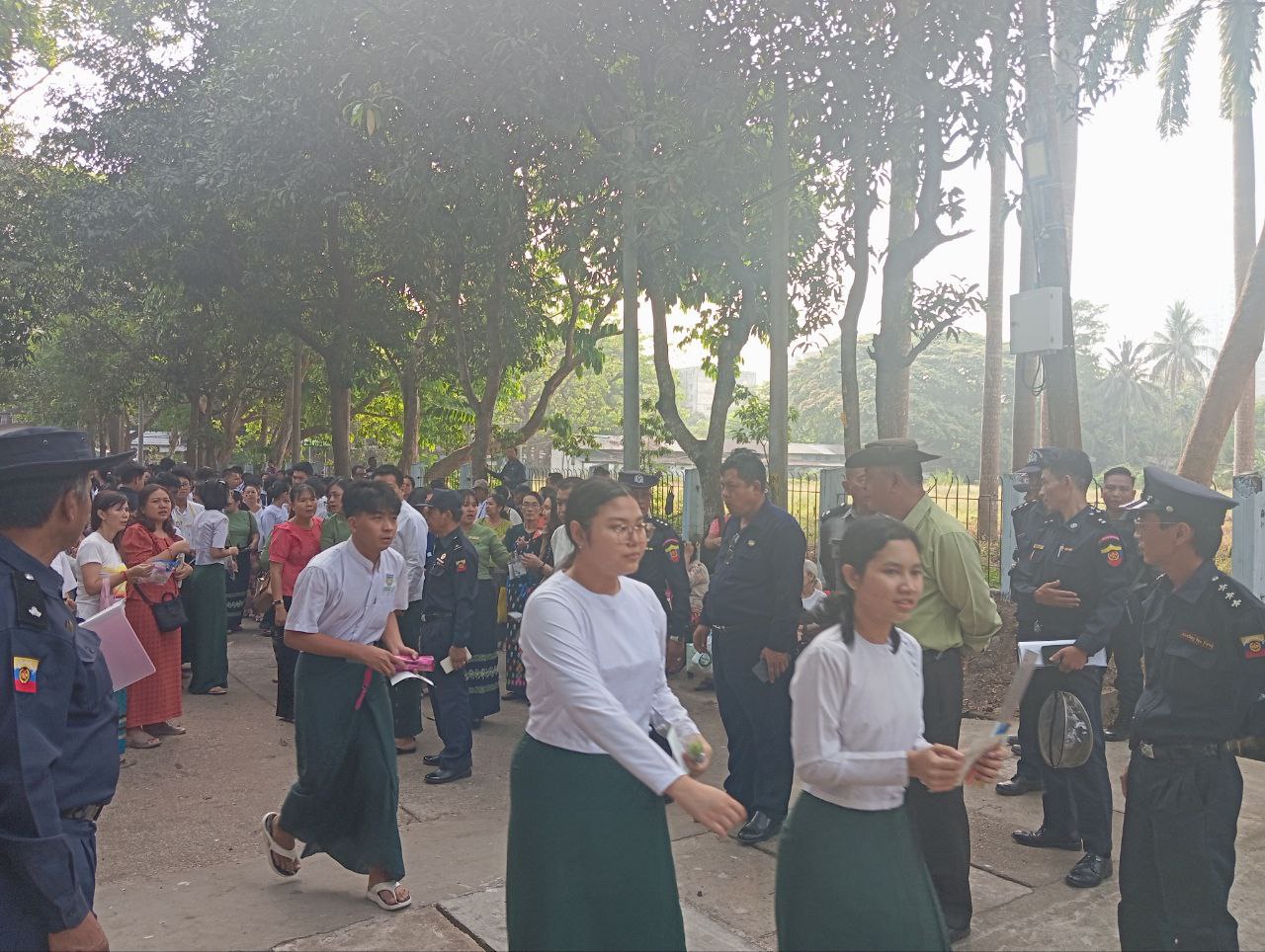 အဆိုပါ တက္ကသိုလ်၀င်စာမေးပွဲ မြန်မာစာဘာသာရပ် စတင်ဖြေဆိုနေမှုအား သင်္ဃန်းကျွန်းခရိုင် စီမံခန့်ခွဲရေးနှင့်အုပ်ချုပ်ရေးကော်မတီဥက္ကဋ္ဌ ဦးဇော်မိုးထိုက်နှင့် အဖွဲ့၀င်များ၊ ခရိုင်ပညာရေးမှူး ဒေါ်စုစုခင်၊ မြို့နယ်စီမံခန့်ခွဲရေးနှင့်အုပ်ချုပ်ရေးကော်မတီဥက္ကဋ္ဌ ဦးမင်းမင်းလတ်နှင့် အဖွဲ့၀င်များ၊ မြို့နယ်အဆင့်ဌာနဆိုင်ရာများပူးပေါင်း၍ ကျောင်းသား၊ ကျောင်းသူများ စာမေးပွဲဖြေဆိုရာတွင် ဖြေဆိုနိုင်ရန်နှင့်လုံခြုံမှုရှိစေရန် အတွင်းစီး၊ အပြင်စီး လုံခြုံရေးအခြေအနေများ စစ်ဆေးဆောင်ရွက်ခဲ့ပြီး စာမေးပွဲဖြေဆိုကြမည့် ကျောင်းသား၊ ကျောင်းသူများကိုလည်း အားပေးစကားများ တိုက်တွန်းပြောကြားခဲ့ကြောင်း သိရသည်။