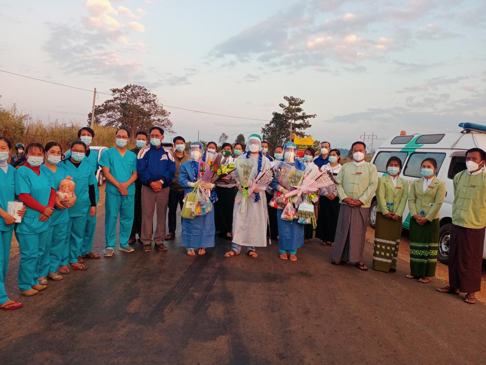 အဆိုပါ ကျန်းမာရေးဝန်ထမ်းသုံးဦးသည် တာဝန်များ ထမ်းဆောင်ပြီး တောင်ကြီးမြို့၊ ပြည်နယ်ကုသရေးနှင့် ပြည်သူ့ကျန်းမာရေးဦးစီးဌာနတွင် RDT ဖြင့် စစ်ဆေးရာ စစ်ဆေးချက်အဖြေ COVID -19 Negative အဖြေထွက်ရှိပြီး အဆိုပါ(၃)ဦးကို ဆေးရုံဝန်ထမ်းအိမ်ရာတွင် Home Quarantine (၁)ပတ် နေထိုင်စေမည် ဖြစ်သည်။ ရှမ်းပြည်နယ် တောင်ပိုင်းရှိ ကျန်းမာရေး ဝန်ထမ်းများသည် စေတနာ့ဝန်ထမ်းအဖြစ် (၆)ကြိမ်မြောက် သွားရောက် တာဝန် ထမ်းဆောင်ခြင်း ဖြစ်ပြီး စုစုပေါင်း(၂၀)ဦး သွားရောက်ခဲ့ကြောင်း သိရှိရသည်။