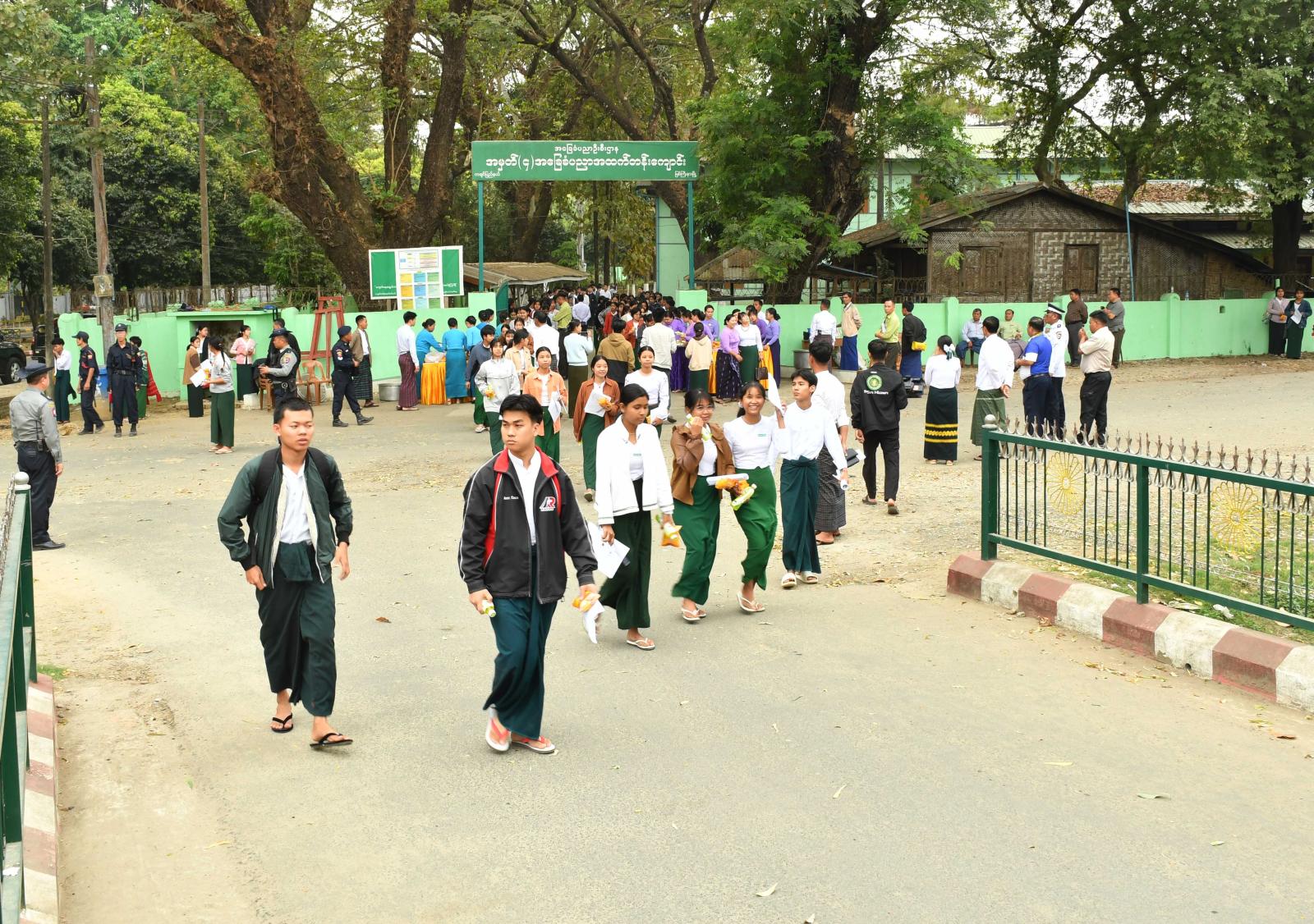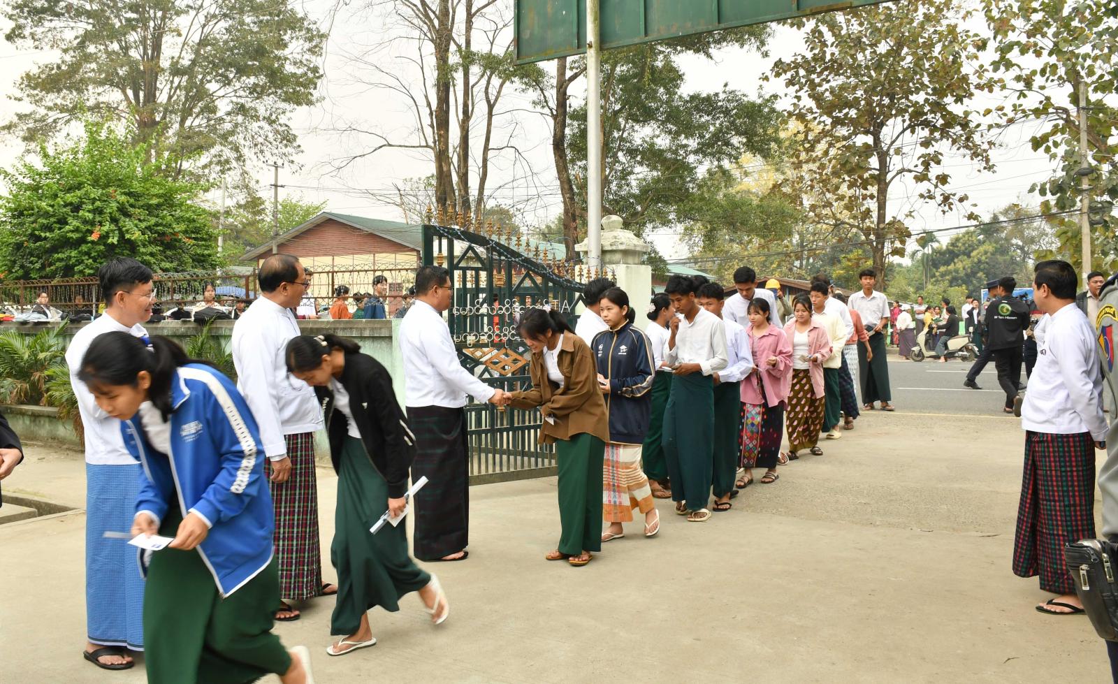 ယင်းနောက် မွန်းတည့် ၁၂ နာရီတွင် ပြည်နယ်ဝန်ကြီးချုပ်နှင့် ဇနီးဒေါ်နန်ဆိုင်း၊ တာဝန်ရှိသူများသည် အမှတ်(၄)အခြေခံပညာအထက်တန်းကျောင်း စာစစ်ဌာနသို့သွားရောက်ခဲ့ကြပြီး မြောက်ပိုင်းတိုင်းစစ်ဌာနချုပ် တိုင်းမှူး ဗိုလ်ချုပ်အောင်ဇော်ထွေးနှင့်ဇနီး၊ တပ်မတော်အရာရှိကြီးများနှင့်အတူ အင်္ဂလိပ်စာဘာသာရပ်ကိုအေးချမ်းစွာဖြေဆိုပြီး ပြန်လည်ထွက်ခွာလာခဲ့ကြသော အဆိုပါကျောင်းအပါအဝင် အ.ထ.က(နန့်ပေါင်)၊ အ.ထ.က (ပမ္မတီး)၊ အ.ထ.က(ခွဲ)ရှမ်းရွာ၊ အ.ထ.က(ခွဲ) ခလရ(၃၇)၊ အ.ထ.က(ခွဲ) ရှဒေါင်(၁)တို့မှ ကျောင်းသား/ ကျောင်းသူများ ပြည်နယ်အမျိုးသမီးရေးရာအဖွဲ့ဝင်များနှင့် မိခင်နှင့်ကလေးစောင့်ရှောက်ရေးအဖွဲ့များနှင့်အတူ ရင်းရင်းနှီးနှီးနှုတ်ဆက်အားပေးခဲ့ကြပြီး အာဟာရဖြစ်စေသည့် အစားအစာမုန့် နှင့် ဖျော်ရေဘူးများကို ဖြန့်ဝေပေးခဲ့ကြသည်။