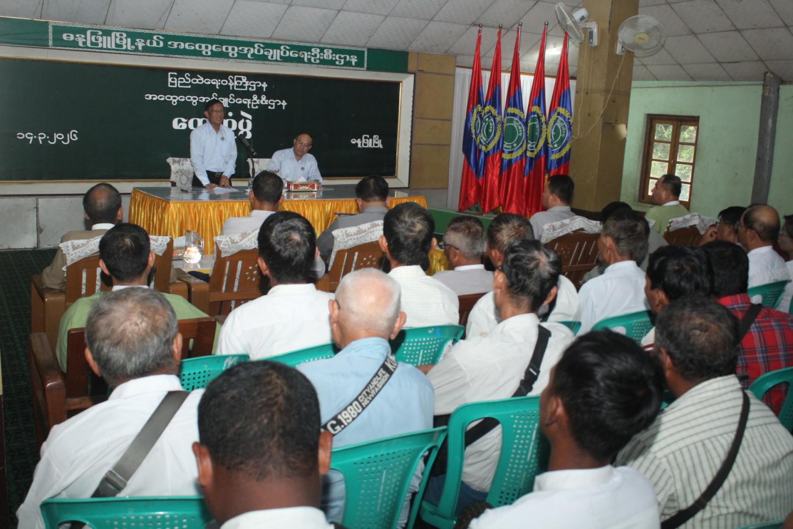 ဧရာဝတီတိုင်းဒေသကြီးအစိုးရအဖွဲ့ဝင်၊ လမ်းပန်းဆက်သွယ်ရေးဝန်ကြီး ဦးအောင်စန်းချစ်နှင့် လူမှုရေးရာဝန်ကြီး ဦးခင်မောင်ကြည်တို့သည် မတ်လ ၁၄ ရက်နေ့ ညနေပိုင်းက မြို့နယ်အထွေထွေအုပ်ချုပ်ရေးဦးစီးဌာနရုံးသို့ ရောက်ရှိကာ မြို့နယ်အတွင်း ၂၀၂၅-၂၀၂၆ ခုနှစ်၊ မိုးစပါးနိုင်ငံ့စီးပွားမြှင့်တင်ရေးရန်ပုံငွေ အစီအစဉ်တွင် ပါဝင်ခြင်းမရှိသော တောင်သူများနှင့် တွေ့ဆုံပွဲ ကျင်းပပြုလုပ်သည်။