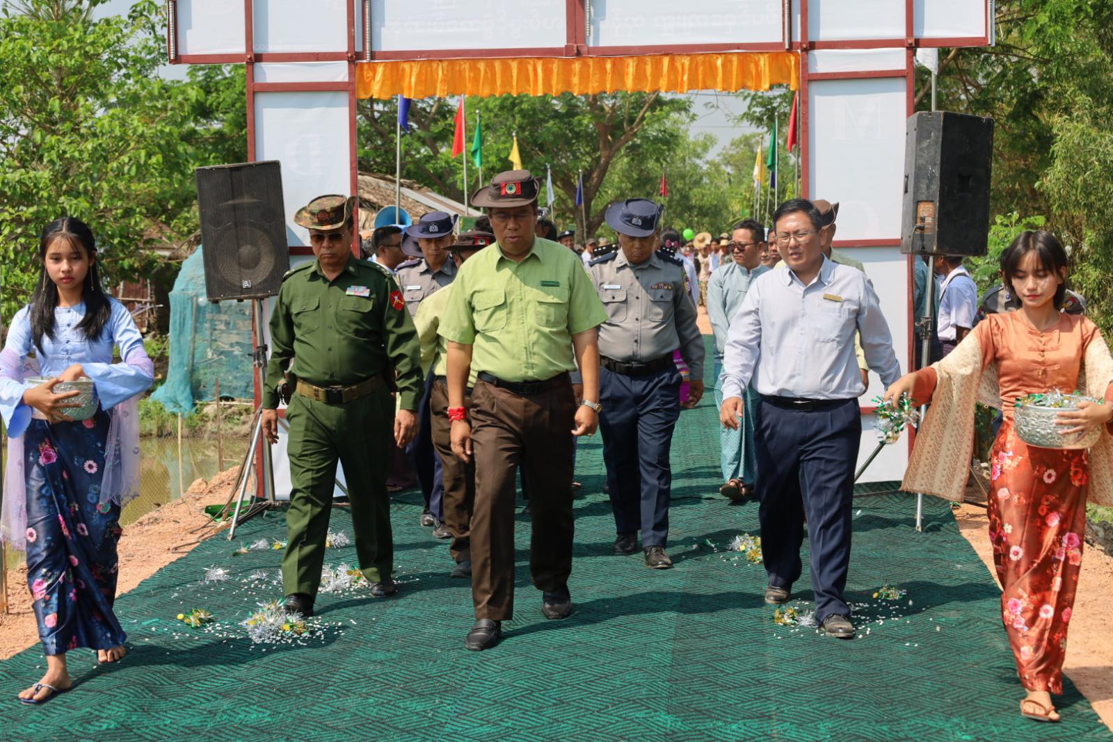 ရှေးဦးစွာ ခရိုင်စီမံခန့်ခွဲရေးနှင့် အုပ်ချုပ်ရေးကော်မတီဥက္ကဋ္ဌ ဦးဇော်လွင်ဦးနှင့် အဖွဲ့ဝင် ဒုတိယဗိုလ်မှူးကြီး ကျော်မင်းယု၊ ခရိုင် ကျေးလက်ဒေသ ဖွံ့ဖြိုးတိုးတက်ရေး ဦးစီးဌာန၊ ခရိုင်ဦးစီးမှူး ဦးထက်အောင်တို့က ဖဲကြိုးဖြတ်ဖွင့်လှစ်ပေးခဲ့ပြီး တက်ရောက်လာကြသော ဌာနဆိုင်ရာများ၊ ရပ်မိရပ်ဖများ၊ ကျေးရွာနေပြည်သူများနှင့်အတူ လှည့်လည်ကြည့်ရှုစစ်ဆေးခဲ့ကြောင်း သိရသည်။