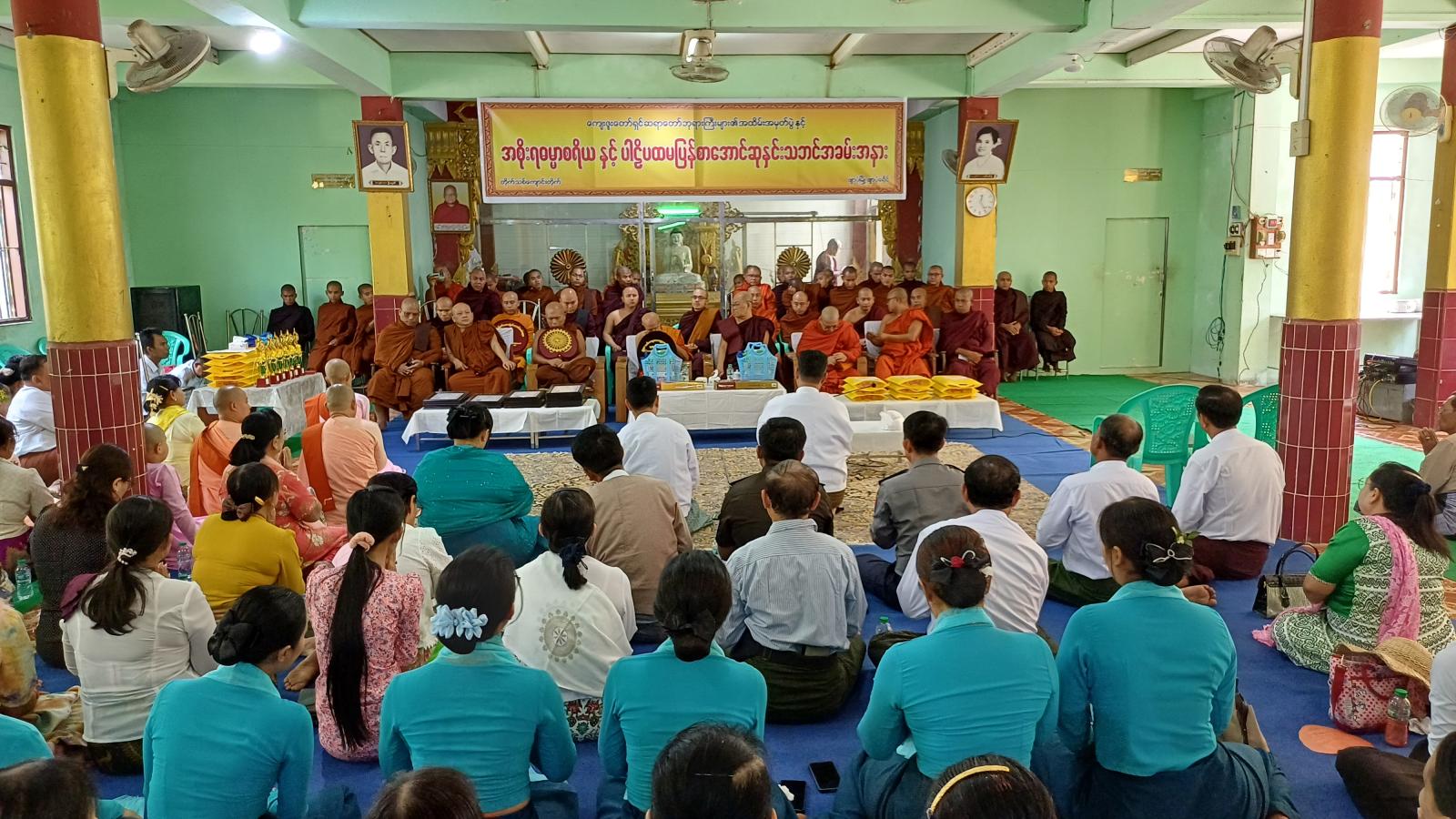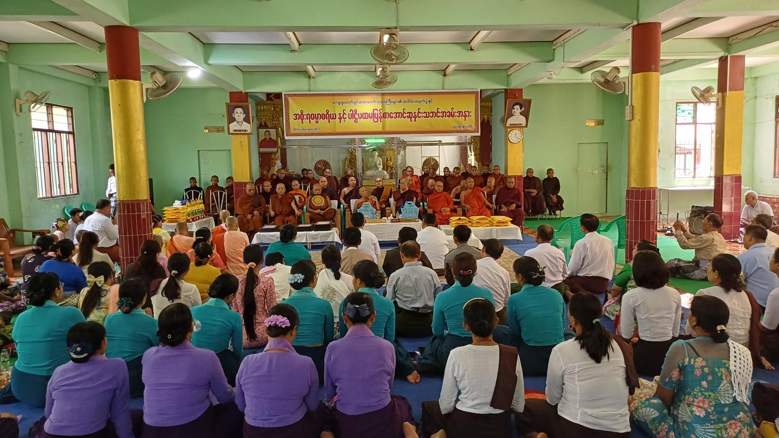 ဧရာဝတီတိုင်းဒေသကြီး၊ ဖျာပုံခရိုင်၊ ဖျာပုံမြို့နယ် အမှတ် (၉)ရပ်ကွက်၊ ဓမ္မဝိနယ ပဌမပြန်တိုက်သစ်ကျောင်းတိုက်တွင် အစိုးရဓမ္မာစရိယနှင့် ပါဠိပထမပြန် စာအောင်ဆုနှင်း သဘင်အခမ်းအနားကို မတ်လ (၁၅)ရက်နေ့ နေ့လယ်ပိုင်းအချိန်က အဆိုပါဘုန်းတော်ကြီးကျောင်းတွင်ကျင်းပသည်။