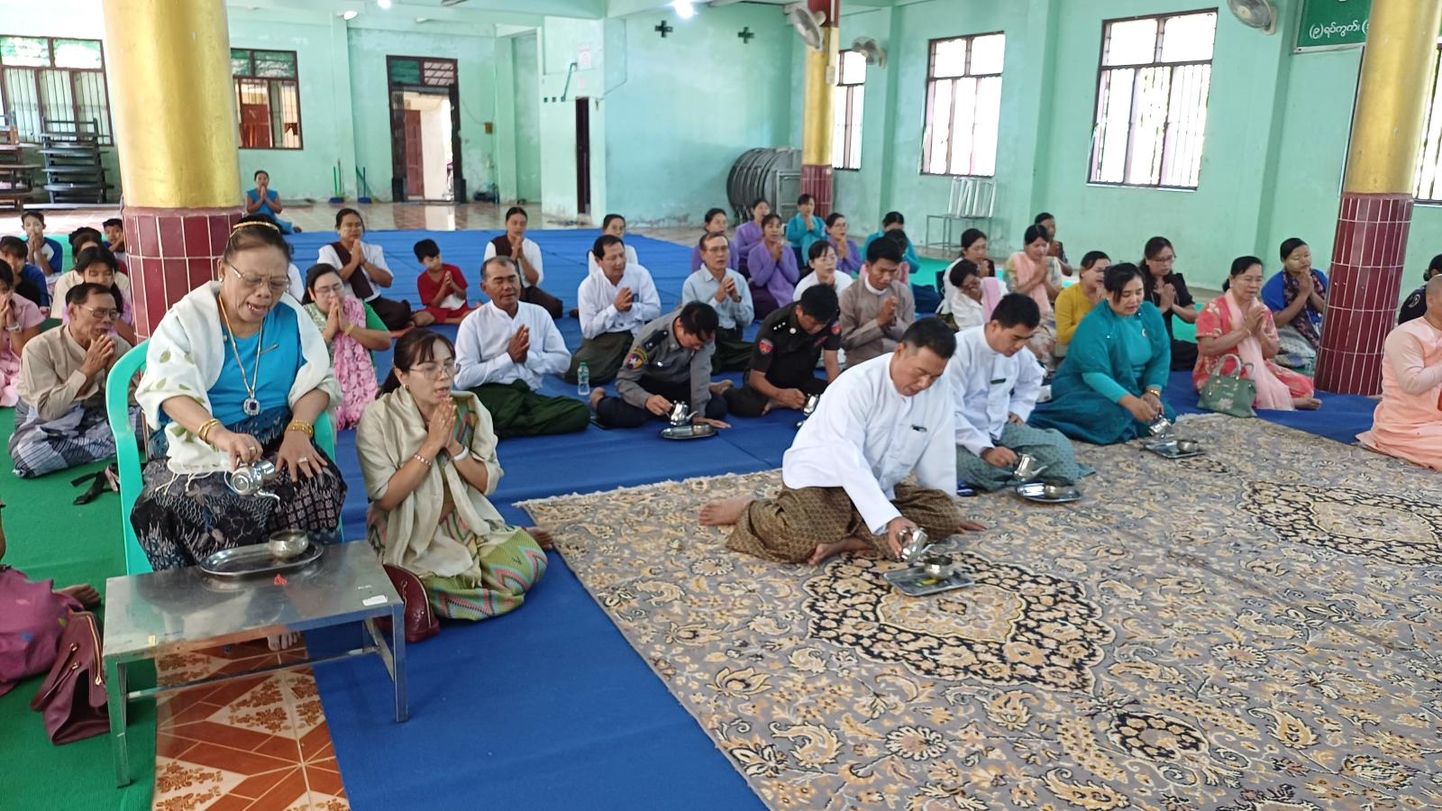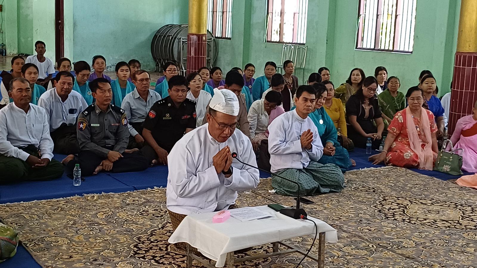 ဆက်လက်၍ ဖျာပုံမြို့အမှတ် (၉)ရပ်ကွက်၊ ဓမ္မဝိနယပဌမပြန်တိုက်သစ်ကျောင်းတိုက်ကြီး၏ ဦးစီးပဓာန နာယက၊ နိုင်ငံတော်သြဝါဒါစရိယ၊ အဘိဓဇအဂ္ဂမဟာသဒ္ဓမ္မဇောတိက၊ အဂ္ဂမဟာပဏ္ဍိတ၊ အဂ္ဂမဟာမင်္ဂလဓမ္မဇောတိကဓဇ၊ ဘဒ္ဒန္တသူရိယမထေရ်မြတ်ထံမှ အနုမောဒနာတရားနာကြားပြီး ကောင်းမှုအစုစုတို့အတွက်ရေစက်သွန်းချ အမျှပေးဝေကြကြောင်း သိရသည်။