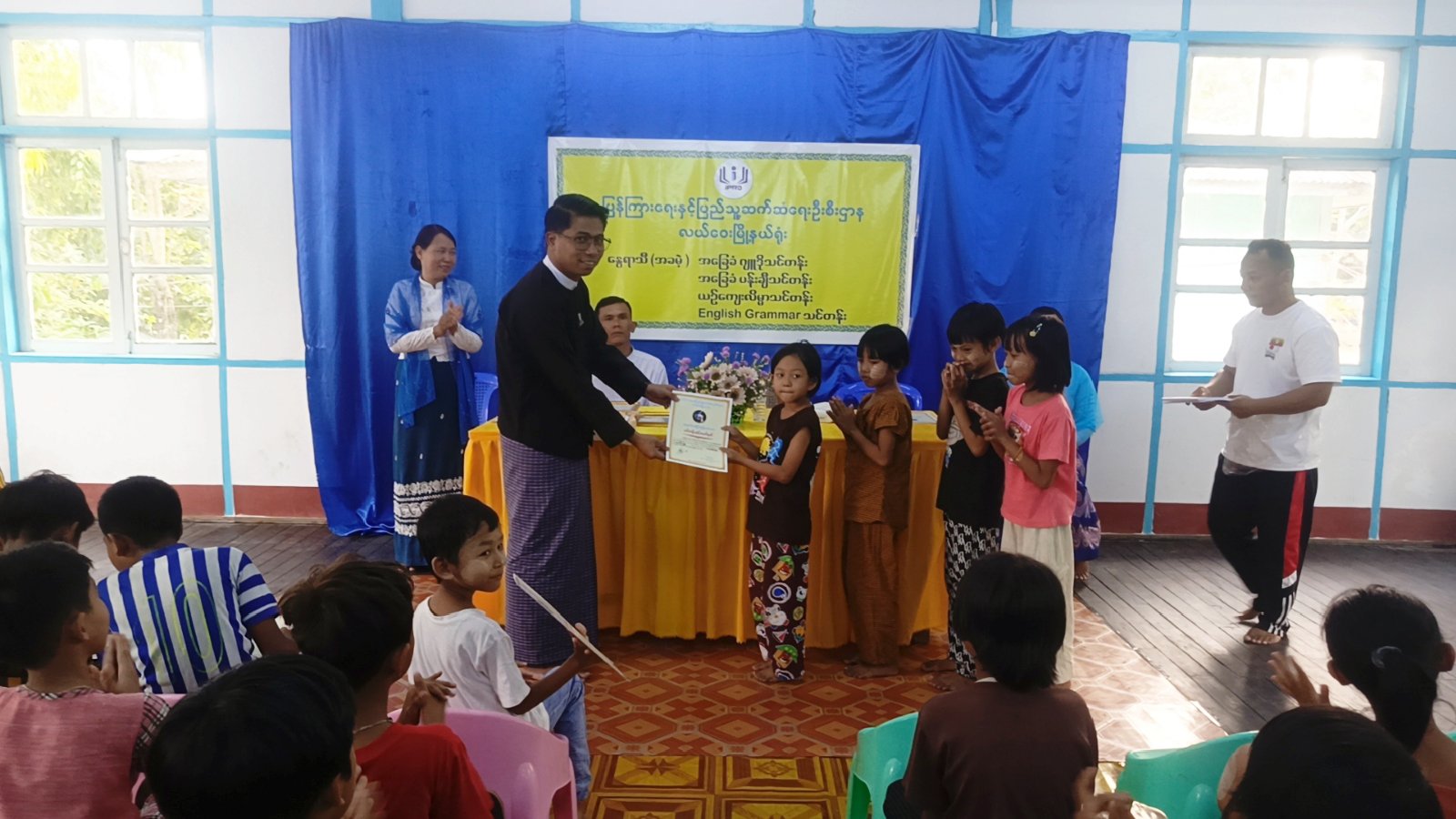 ဆက်လက်၍ နွေရာသီ(အခမဲ့)သင်တန်းများတွင် အသုံးပြုနိုင်ရန်အတွက် အလှူငွေကျပ် (၁၀)သိန်း လှူဒါန်းသည့် မြန်မာလူငယ်ဖွံ့ဖြိုးတိုးတက်ရေးအသင်းနှင့် မြို့နယ်အတွင်းဖွင့်လှစ်မည့် နွေရာသီယဉ်ကျေးလိမ္မာသင်တန်းများအတွက် အလှူငွေကျပ်တစ်သိန်းလှူဒါန်းသည့် မြို့နယ်အမျိုးသမီးရေးရာအဖွဲ့ဥက္ကဋ္ဌ ဒေါက်တာသဇင်မြင့်တို့အား မြို့နယ်ဦးစီးမှူးက ဂုဏ်ပြုမှတ်တမ်းလွှာများပေးအပ်သည်။ ဆက်လက်၍ မြို့နယ်ဦးစီးမှူးက သင်တန်းနည်းပြများအား ဂုဏ်ပြုလက်ဆောင်များပေးအပ်ကာ တာဝန်ရှိသူများက သင်တန်းသား၊ သင်တန်းသူများအား သင်တန်းဆင်းလက်မှတ်များ ပေးအပ်သည်။