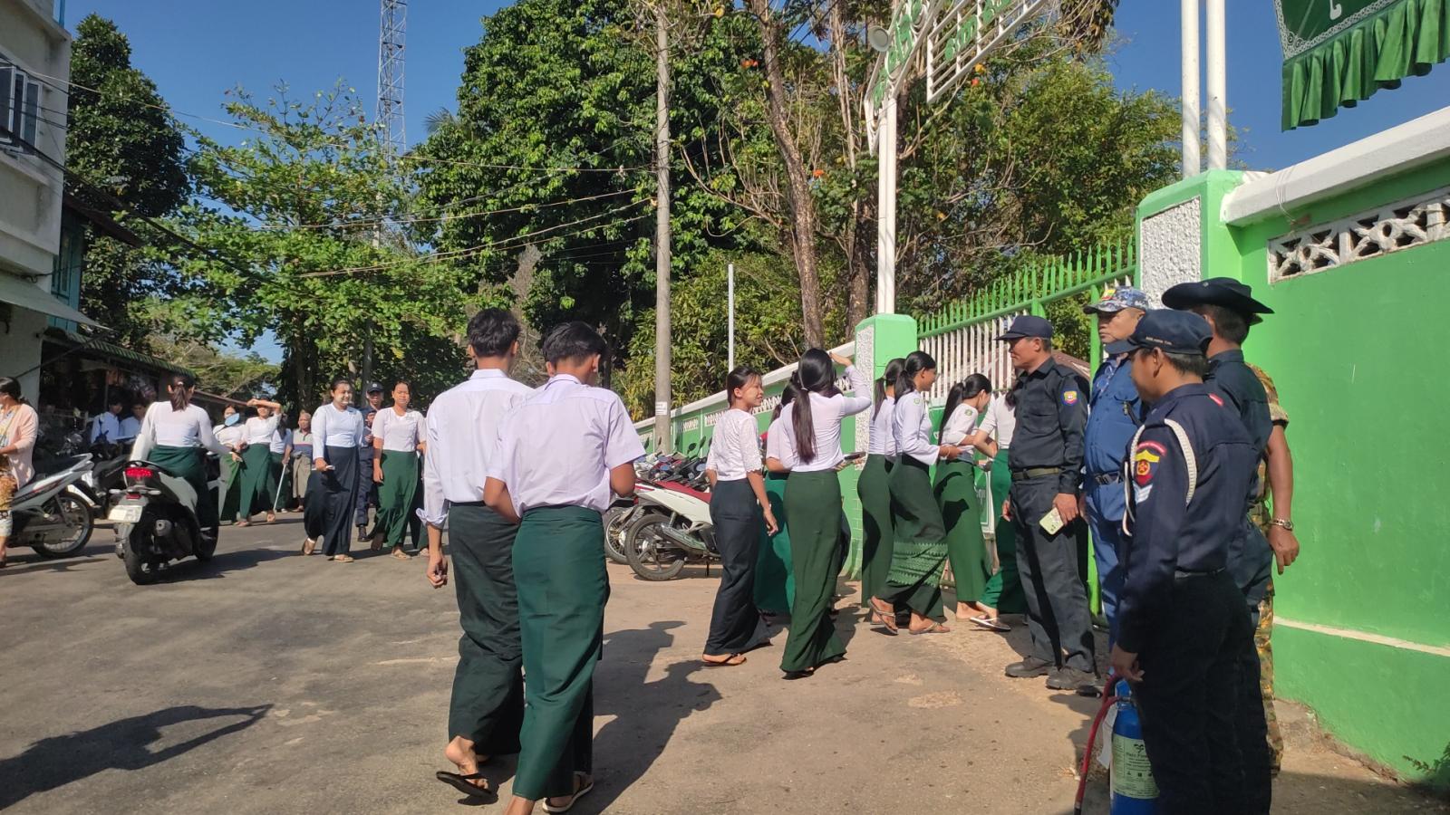 တက္ကသိုလ်ဝင်စာမေးပွဲကို ကျောင်းသား၊ ကျောင်းသူများ ဘေးကင်းလုံခြုံ၍ စိတ်အေးချမ်းသာစွာ ဖြေဆိုနိုင်ရေးအတွက် စာစစ်ဌာနအသီးသီးတွင် တာဝန်ကျ ဆရာ/မများက အနီးကပ်ကြီးကြပ် ဆောင်ရွက်ပေးလျက်ရှိပြီး ကော့သောင်းခရိုင်နှင့် မြို့နယ်စာမေးပွဲကြီးကြပ်ရေးအဖွဲ့များ၊ ကျောင်းအကျိုးတော်ဆောင်နှင့် မိဘဆရာအသင်း၊ ရပ်မိရပ်ဖများနှင့် တာဝန်ရှိသူများက အပြင်စည်းအဖြစ်လည်းကောင်း၊ ဆရာ/မများက အတွင်းစည်းအဖြစ်လည်းကောင်း တာဝန်များခွဲဝေချထား၍ စာမေးပွဲများ ကျင်းပလျက်ရှိကြောင်း သိရသည်။