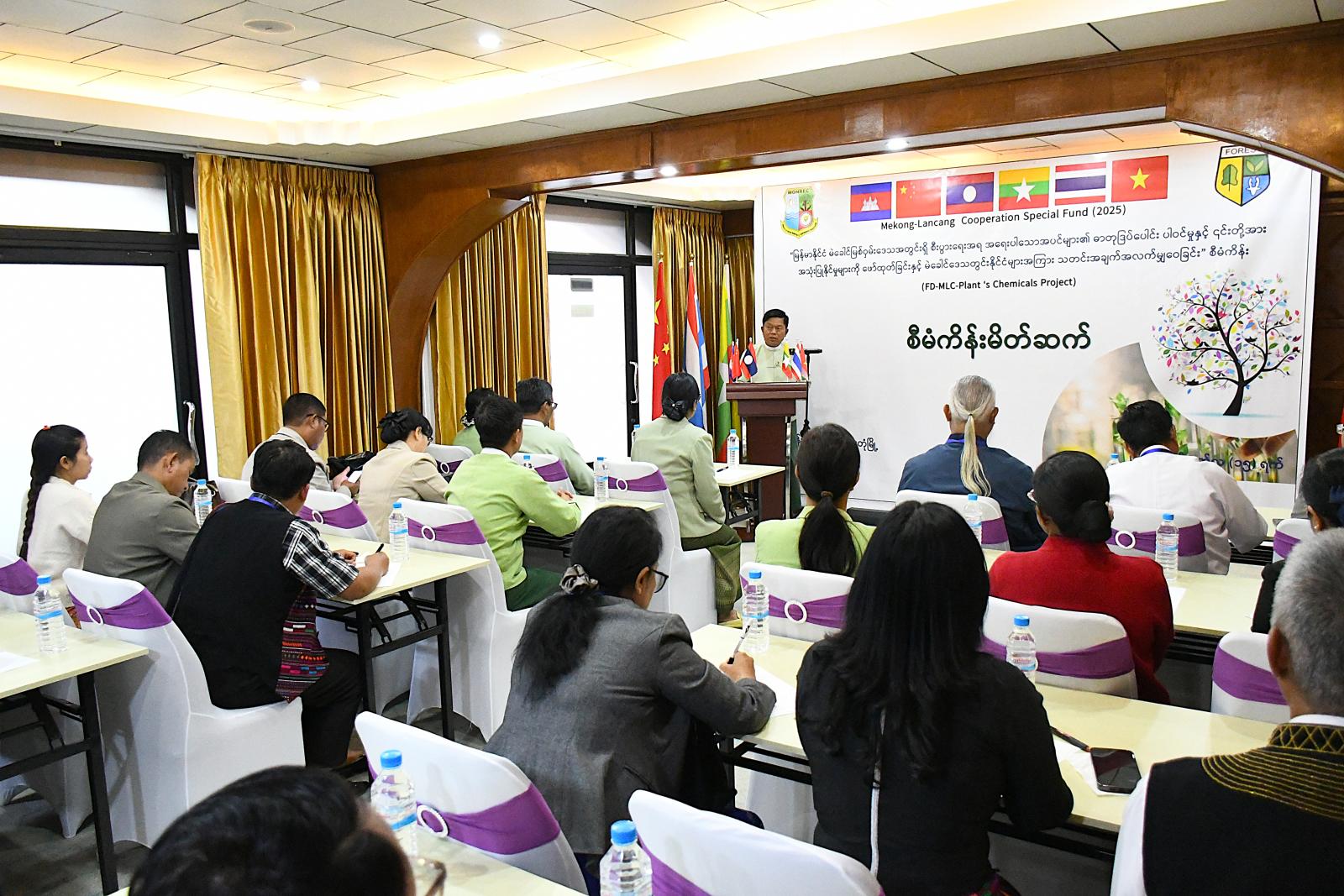 ရှမ်းပြည်နယ်(အရှေ့ပိုင်း)၊ ကျိုင်းတုံမြို့၌ မဲခေါင်-လန်ချန်းပူးပေါင်းဆောင်ရွက်မှု အထူးရန်ပုံငွေ (၂၀၂၅)အစီအစဉ်ဖြင့် ဆောင်ရွက်လျက်ရှိသည့် မြန်မာနိုင်ငံမဲခေါင်မြစ်ဝှမ်းဒေသအတွင်းရှိ စီးပွားရေးအရအရေးပါသောအပင်များ၏ ဓာတုဒြပ်ပေါင်းပါဝင်မှုနှင့် ၎င်းတို့အား အသုံးပြုနိုင်မှုများကိုဖော်ထုတ်ခြင်းနှင့် မဲခေါင်ဒေသအတွင်း နိုင်ငံများအကြား သတင်းအချက်အလက်မျှဝေခြင်း (FD-MLC Plant’s Chemical) စီမံကိန်းမိတ်ဆက် အခမ်းအနားကို ယမန်နေ့က ဟွမ်ဟိန်းဟိုတယ်တွင် ကျင်းပသည်။