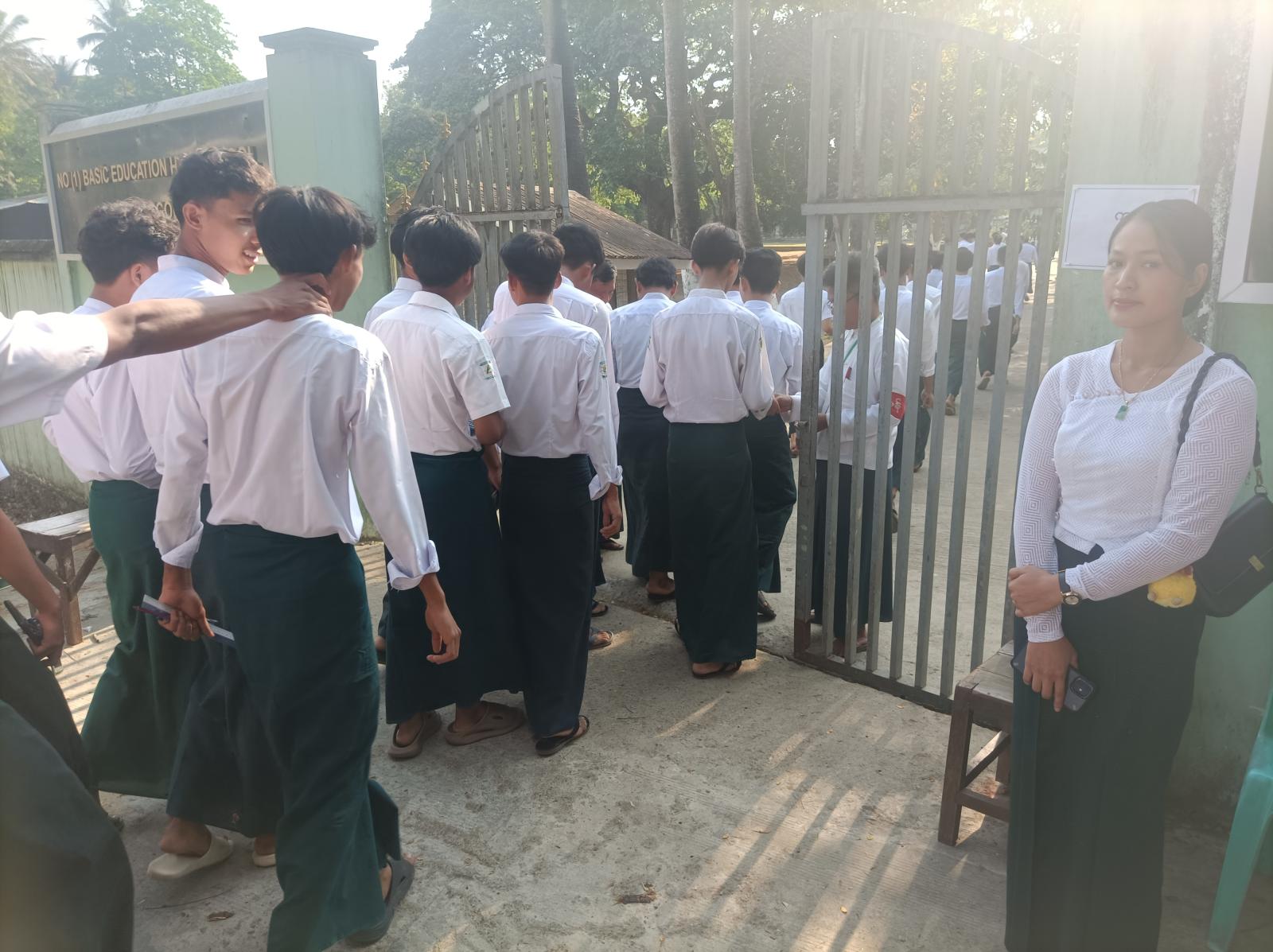 ဧရာဝတီတိုင်းဒေသကြီး၊ ကျုံပျော်ခရိုင်၊ကျောင်းကုန်းမြို့၌ Grade-12(ဒွါဒသမတန်း) ကျောင်းသား/သူများ တက္ကသိုလ်ဝင်စာမေးပွဲ ရူပဗေဒဘာသာနှင့်သမိုင်းဘာသာ ယနေ့နံနက် ၉ နာရီအချိန် ဆက်လက်ဖြေဆိုခဲ့ကြသည်။
