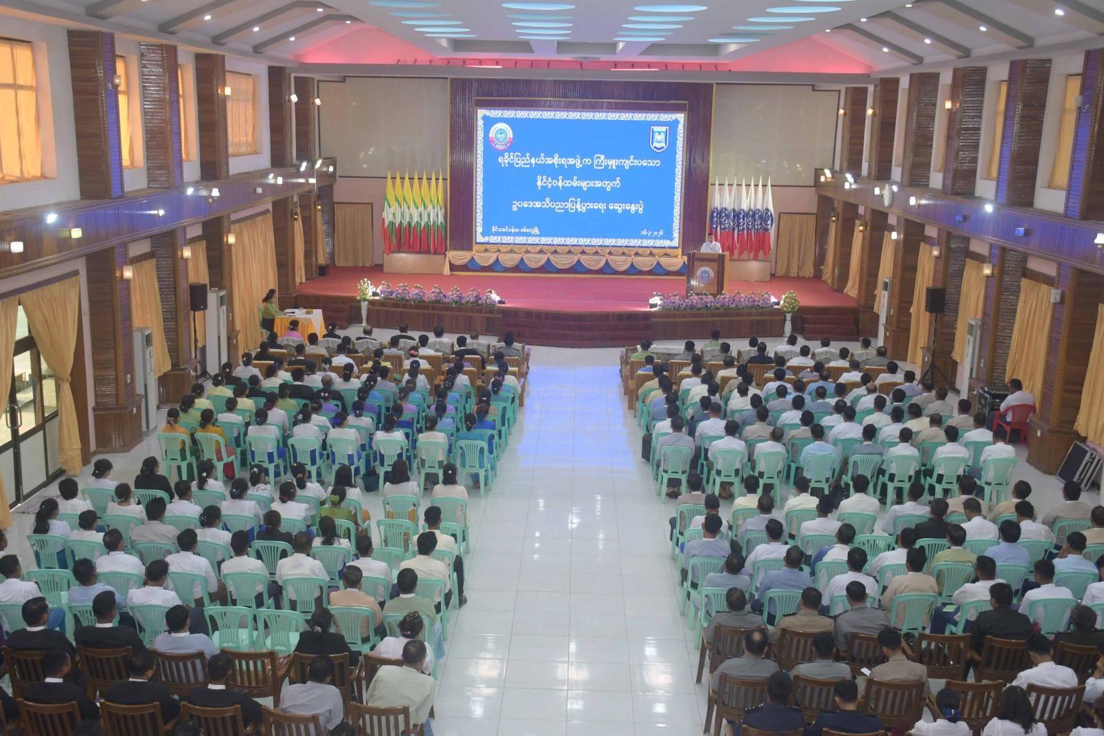 နိုင်ငံ့ဝန်ထမ်းအရာရှိများအတွက် ဥပဒေအသိပညာပြန့်ပွားရေး ဆွေးနွေးပွဲဖွင့်ပွဲအခမ်းအနားကို ယနေ့နံနက်ပိုင်းက စစ်တွေမြို့ ခိုင်သဇင်ခန်းမ၌ကျင်းပသည်။