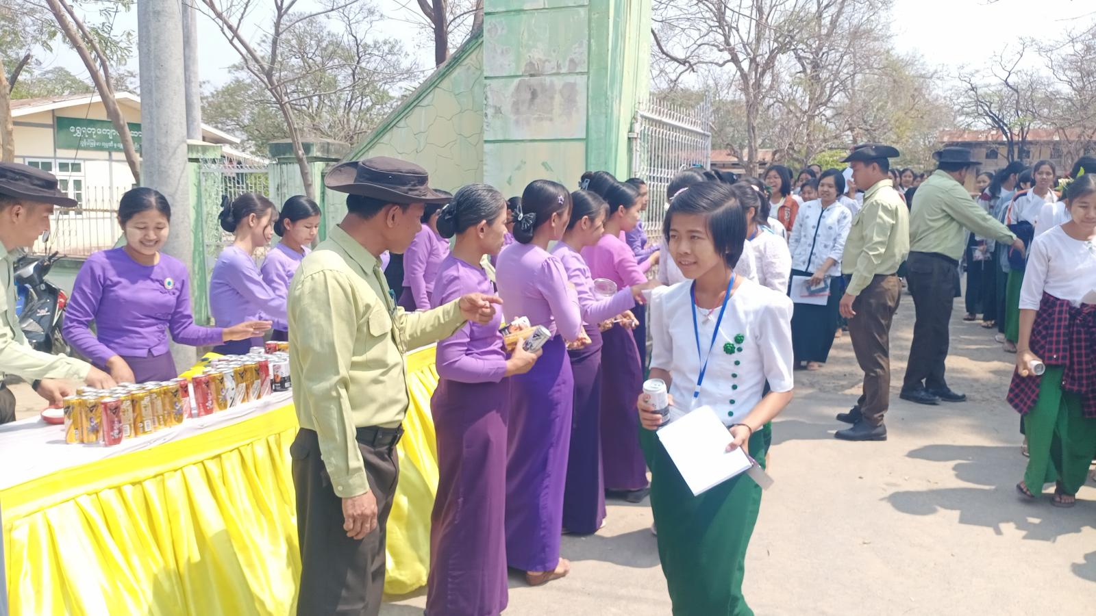 ထိုသို့လှူဒါန်းရာတွင် ခရိုင်စီမံခန့်ခွဲရေးနှင့် အုပ်ချုပ်ရေးကော်မတီဥက္ကဋ္ဌ ဦးကိုကိုလှိုင်နှင့်အဖွဲ့ဝင်များ၊ မြို့နယ်စီမံခန့်ခွဲရေးနှင့် အုပ်ချုပ်ရေးကော်မတီဥက္ကဋ္ဌ ဦးကျော်ခိုင်ဦးနှင့်အဖွဲ့ဝင်များ၊ ခရိုင်/မြို့နယ် အမျိုးသမီးရေးရာအဖွဲ့နှင့် မိခင်နှင့်ကလေးစောင့်ရှောက်ရေးအသင်းဝင်များက အ.ထ.က(၁)ကန့်ဘလူစာစစ်ဌာနမှ တက္ကသိုလ်ဝင်စာမေးပွဲဖြေဆိုကြမည့် ကျောင်းသားကျောင်းသူ ၉၄၄ ဦးနှင့်တာဝန်ကျ ဆရာဆရာမများ၊ ကျန်းမာရေးဝန်ထမ်းများအား အချိုရည်ဘူးများ လှူဒါန်းခဲ့ကြောင်း သိရသည်။