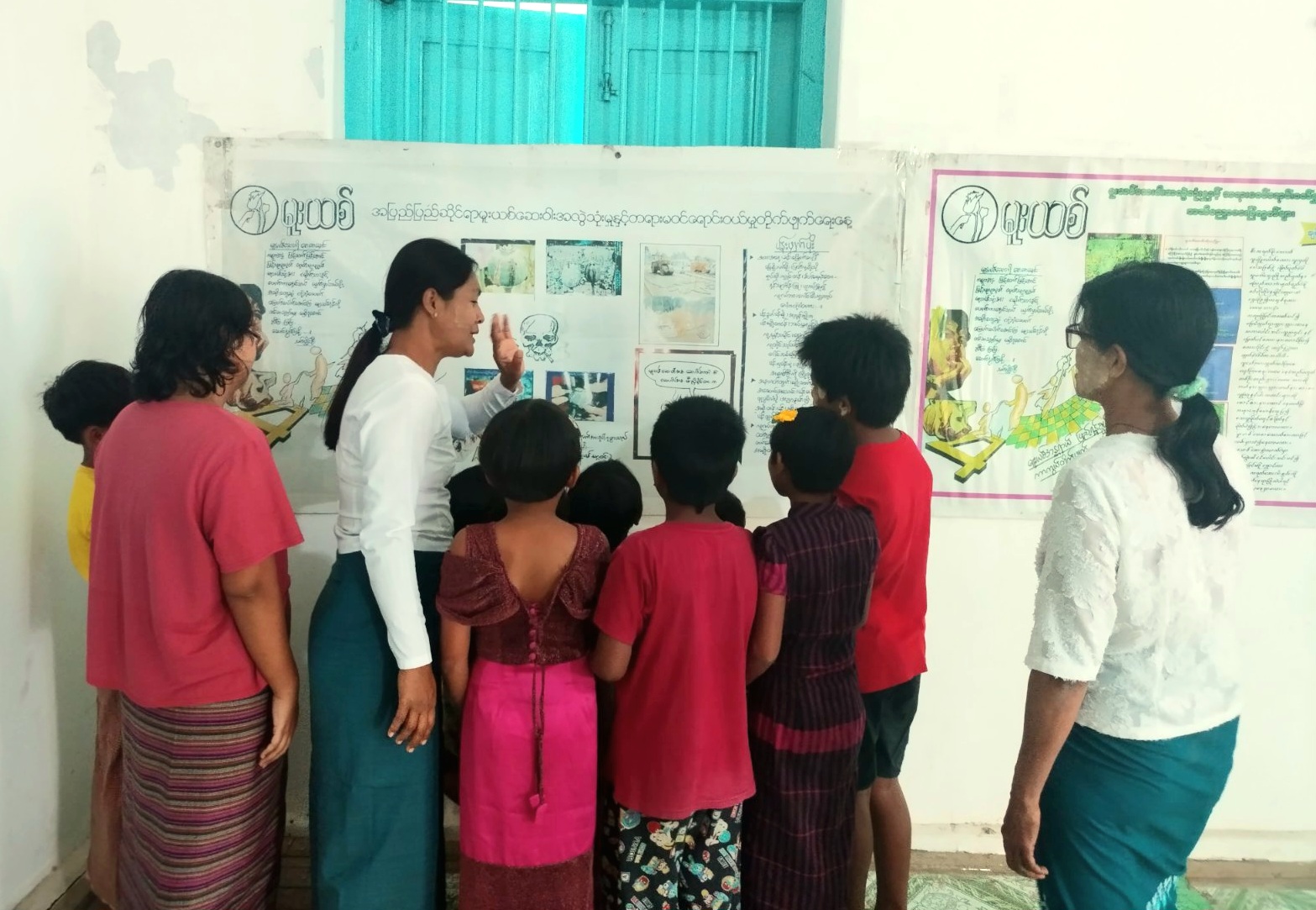 ထို့နောက် တက်ရောက်လာသည့် ကျောင်းသား/ကျောင်းသူ လူငယ်မောင်မယ်များက ဆွေးနွေးဟောပြောသည့် အကြောင်းအရာများနှင့်စပ်လျဉ်း၍ သိရှိလိုသည်များကိုမေးမြန်းရာ မြို့နယ်ဦးစီးမှူးက ပြန်လည်ရှင်းလင်းဖြေကြားပြီး မူးယစ်ဆေးဝါးအန္တရာယ်တားဆီးကာကွယ်ရေးနှင့် လူငယ်ရေးရာအသိပညာဗဟုသုတသိကောင်းစရာများပါဝင်သော နံရံကပ်စာစောင်များကို ခင်းကျင်းပြသပေးခဲ့ကြောင်း သိရသည်။