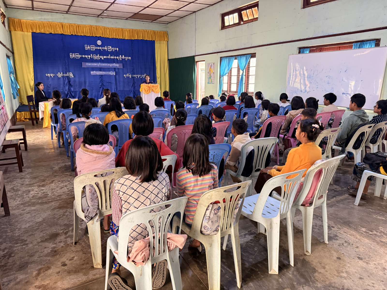 ရှေ့ဦးစွာ ခရိုင်ပြန်ကြားရေးနှင့်ပြည်သူ့ဆက်ဆံရေးဦးစီးဌာန၊ ခရိုင်ဦးစီးမှူး ဒေါ်မျိုးမျိုးသွယ်နှင့် ခရိုင်ဦးစီးအရာရှိ ဒေါ်နန်းပြည့်စန္ဒီမြင့်တို့က ကလေးအလုပ်သမား၏အဓိပ္ပာယ်၊ ကလေးအလုပ်သမားနှင့်ပတ်သက်သည့်ဥပဒေသတ်မှတ်ချက်များ၊ ဘေးအန္တရာယ်ရှိသည့်လုပ်ငန်းခွင်တွင် ကလေးအလုပ်သမားများ ခိုင်းစေခြင်းမပြုရပုံနှင့် လူကုန်ကူမှုအကြောင်းအရာများစသည်တို့အား အသိပညာပေးဟောပြောခဲ့ကြပြီး ပြန်လည်ဆွေးနွေးနိုင်သူများအား ဗလာစာအုပ်များ ဆုချီးမြှင့်ကြကြောင်း သိရသည်။