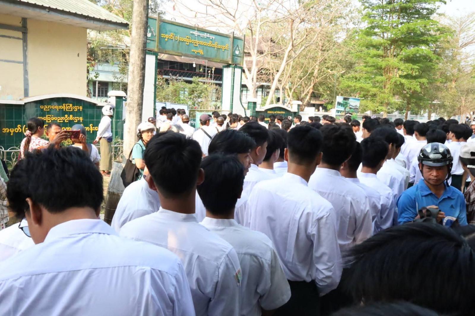 ဧရာဝတီတိုင်းဒေသကြီး၊ မအူပင်ခရိုင်၊ မအူပင်မြို့၌ ၂၀၂၆ ခုနှစ်၊ တက္ကသိုလ်ဝင်စာမေးပွဲ(ဇီဝဗေဒဘာသာရပ်နှင့် ဘောဂဗေဒဘာသာရပ်)ကို ယနေ့ မတ်လ ၁၇ ရက်နေ့ နံနက် ၉ နာရီအချိန်က ကျောင်းသား/ကျောင်းသူများ အေးချမ်းစွာ ဆက်လက်ဖြေဆိုလျက်ရှိသည်။